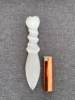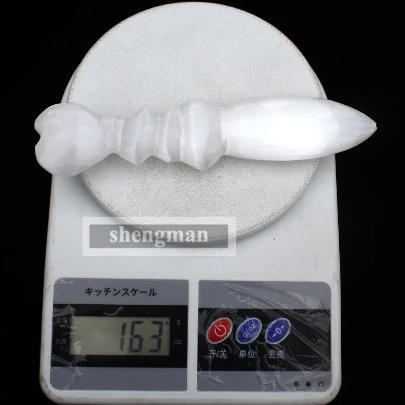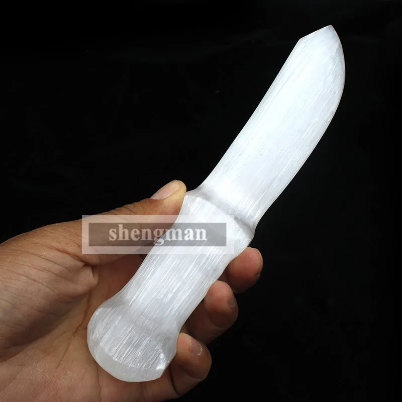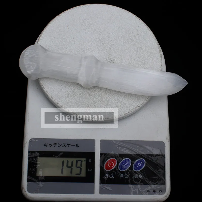 Lighter place next to it to show height of the item. Tips of the knife is chipped and should be protected with a plastic so tips remains sharp or not chipped. Cannot tell if it is genuine selenite.