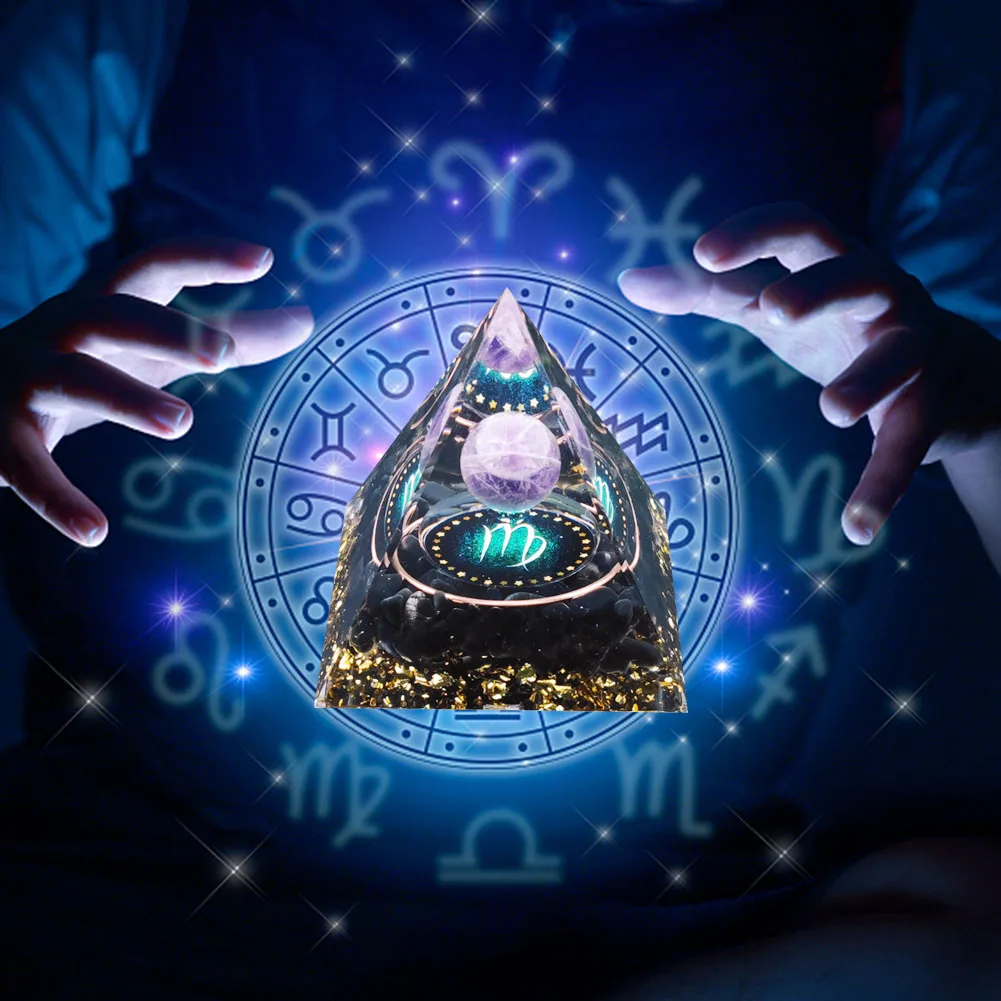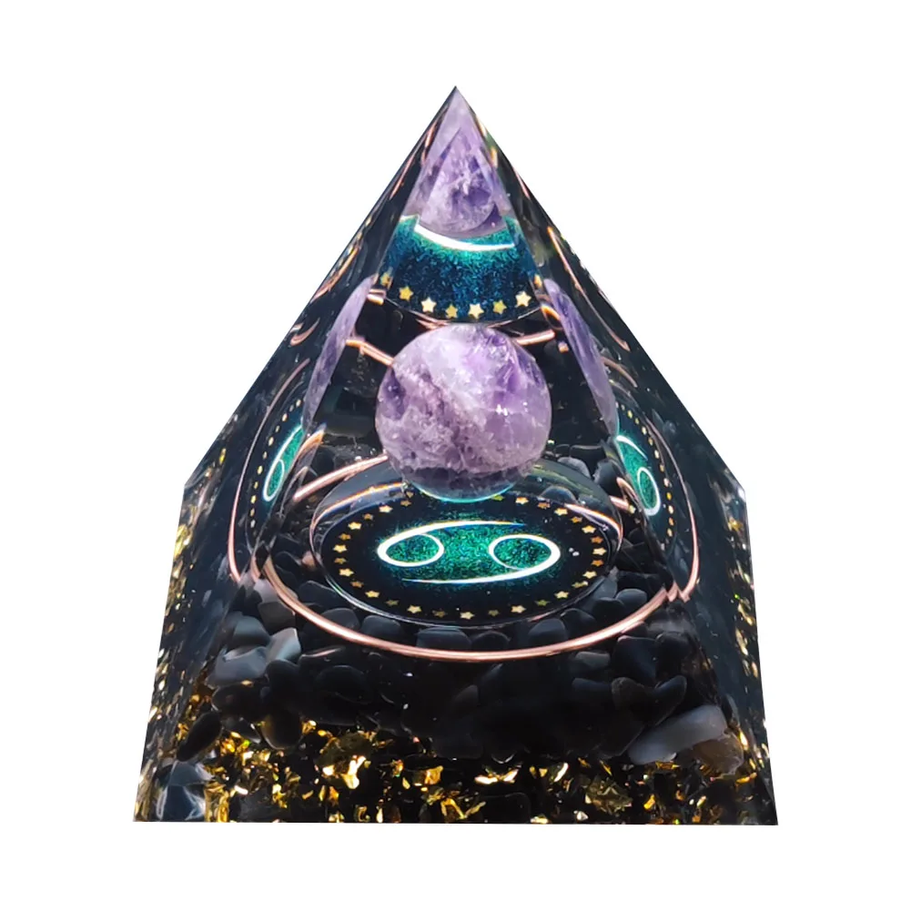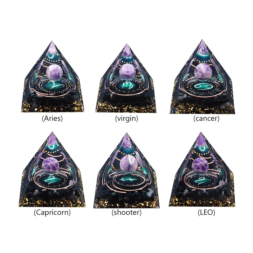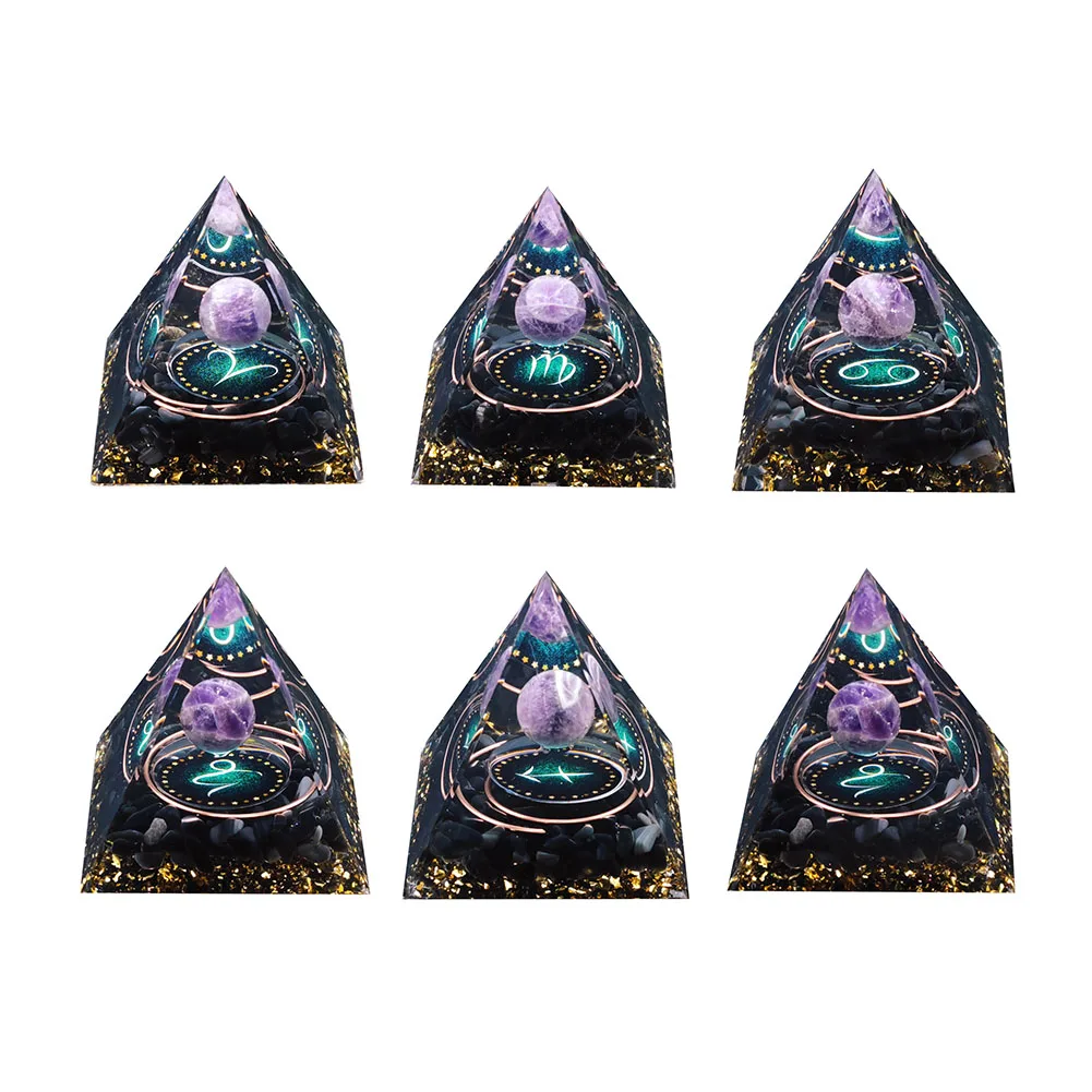 Natural Orgone Pyramid 12 Constellation Healing Crystal Energy Reiki Chakra Energy Generator Orgonite Meditation Stone Ornament Crafts Jewelry