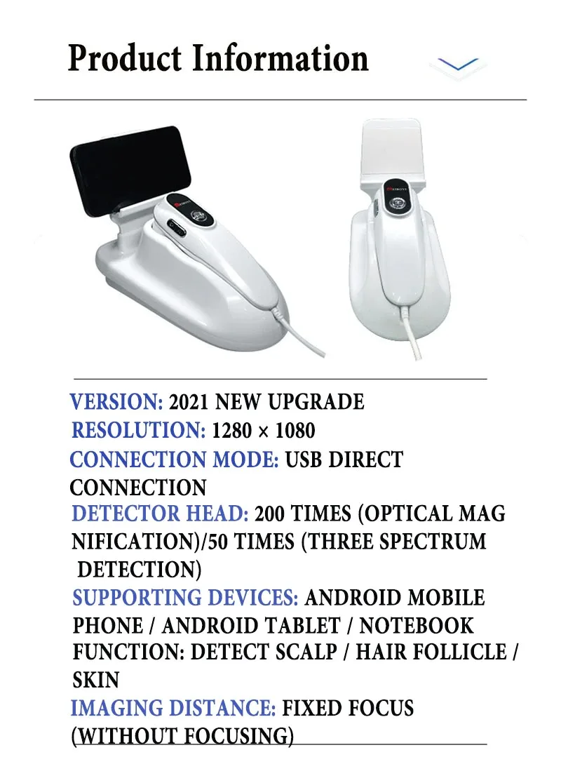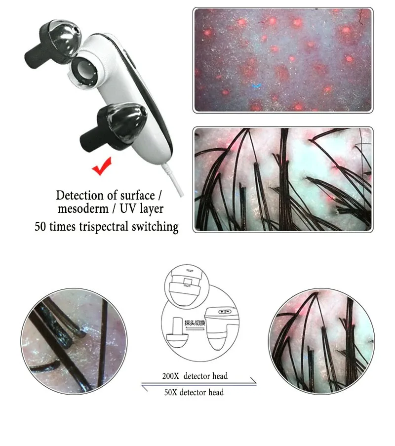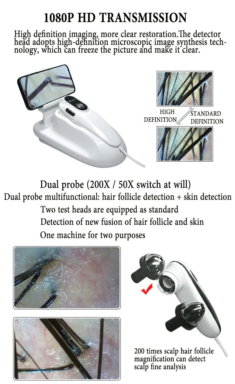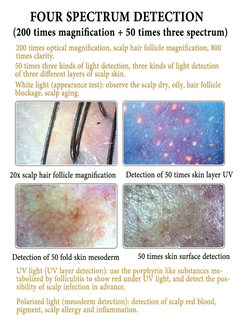 2 Probe 5X-200X USB Intelligent Dermal Hair Follicle Detector Skin UV Analyzer Hair Magnifying Detection Scalp Hair Microscope