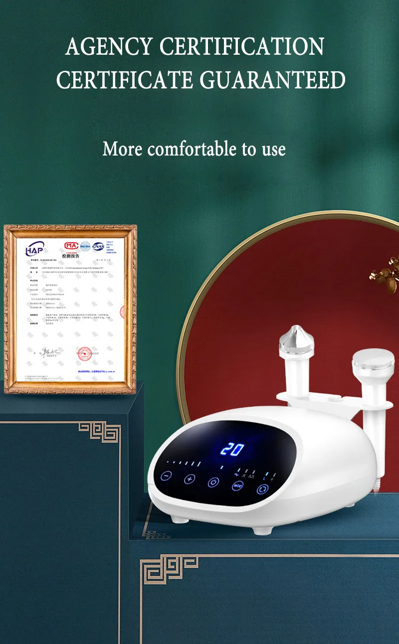 Ultrasound has strong power and energy, acting on the face can cause skin cells to vibrate, produce a fine massage effect, change the cell volume, thereby improving local blood and lymph circulation, enhancing cell permeability, and improving tissue metabolism and Regenerative ability, soften tissues, stimulate the nervous system and cell function, and make the skin shiny and elastic.