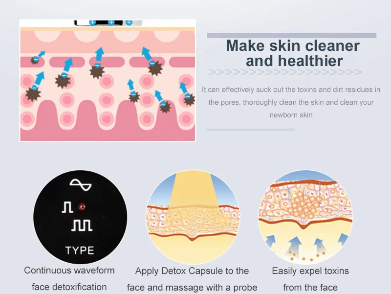 1. Facial detoxification spot scanner can make your skin cleaner and healthier, effectively suck out toxins and dirt residues in the pores, thoroughly clean the depths of your skin, and clean your newborn skin.