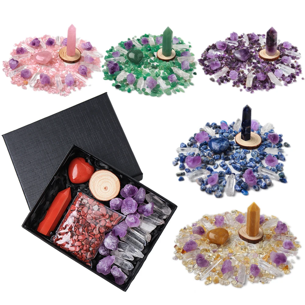 3 Styles Box of Crystal Energy Collection Points Natural Mineral Mystery Boxes Reiki Stone Set Irregular Mini Gravel Gemstone 7 Chakra Mineral Healing Stones Wand Points Quartz Tower Therapy Decorations for Home Office Meditation