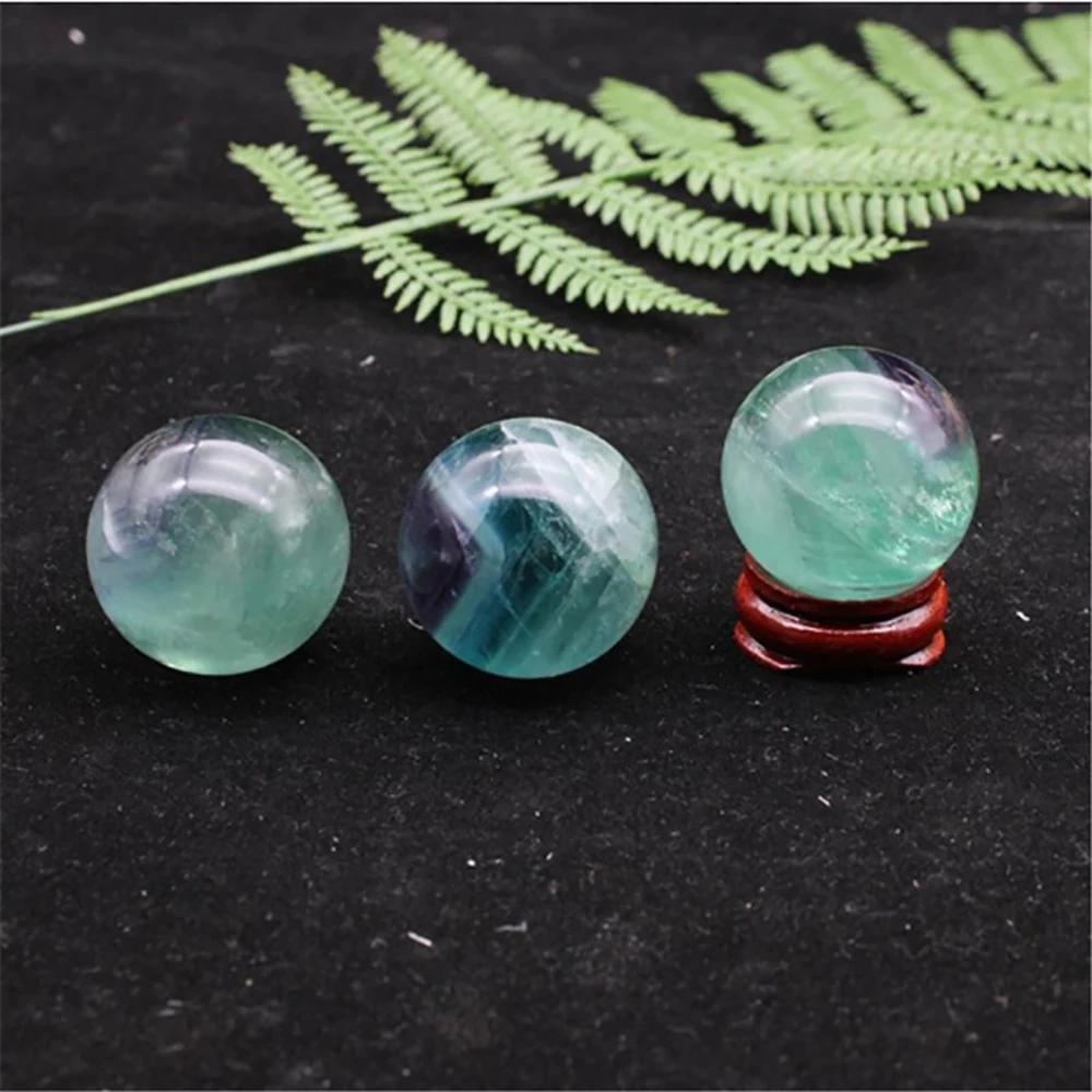 30mm Natural Fluorite Healing Crystal Ball Green Gemstone Divination Sphere with Stand