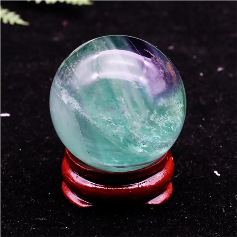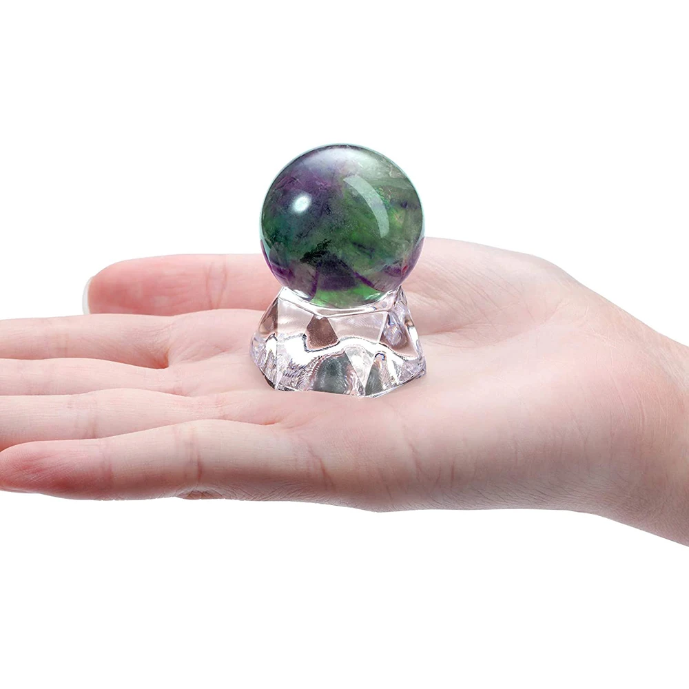 30mm Natural Fluorite Healing Crystal Ball Green Gemstone Divination Sphere with Stand