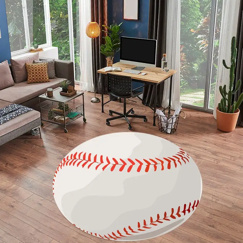 3D Basketball Football Baseball Print Area Rug Round Floo…