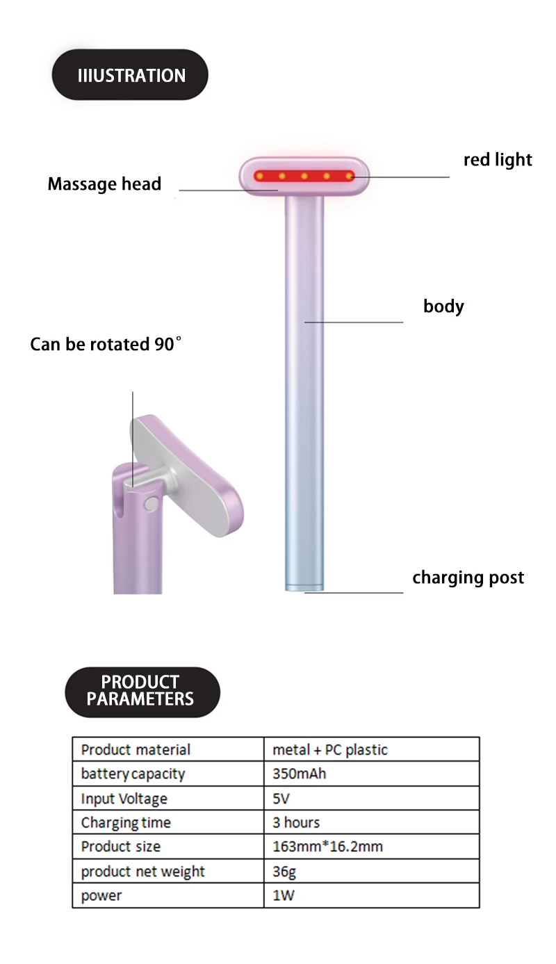 Warming wand head helps to increase the absorption of skin care products, reduce redness, and support healthy, glowing skin.