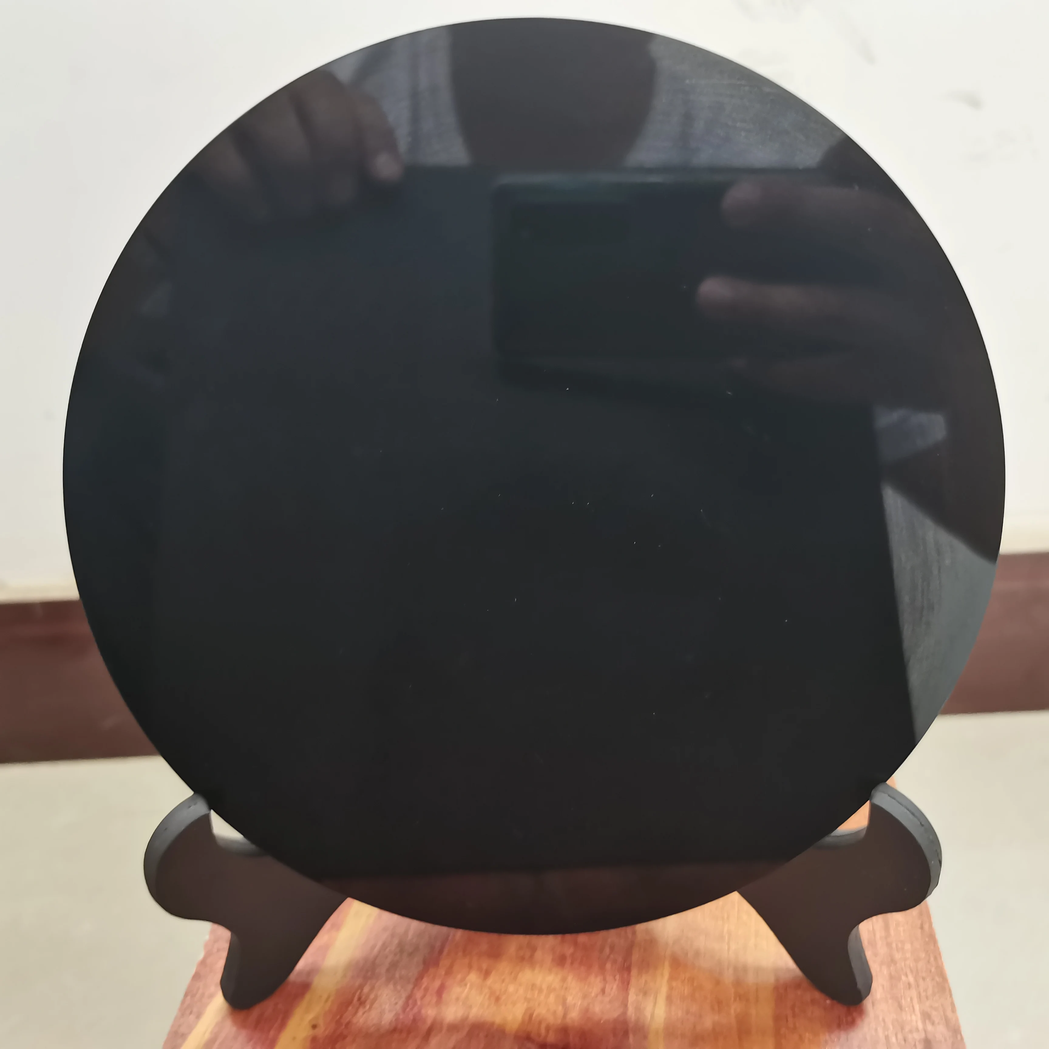 6-20cm Mexican Natural Black Obsidian Smoking Mirror Stone Circle Disk Round Plate Healing For Home &Office Decor