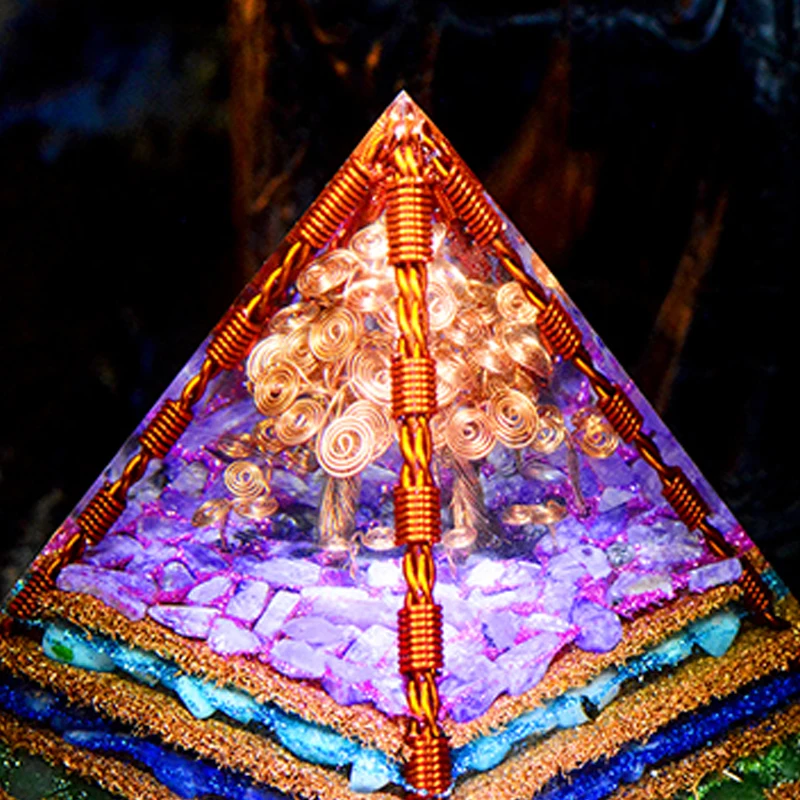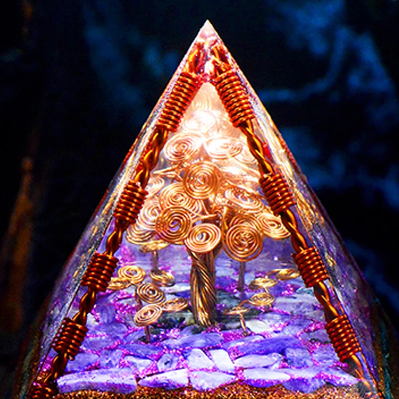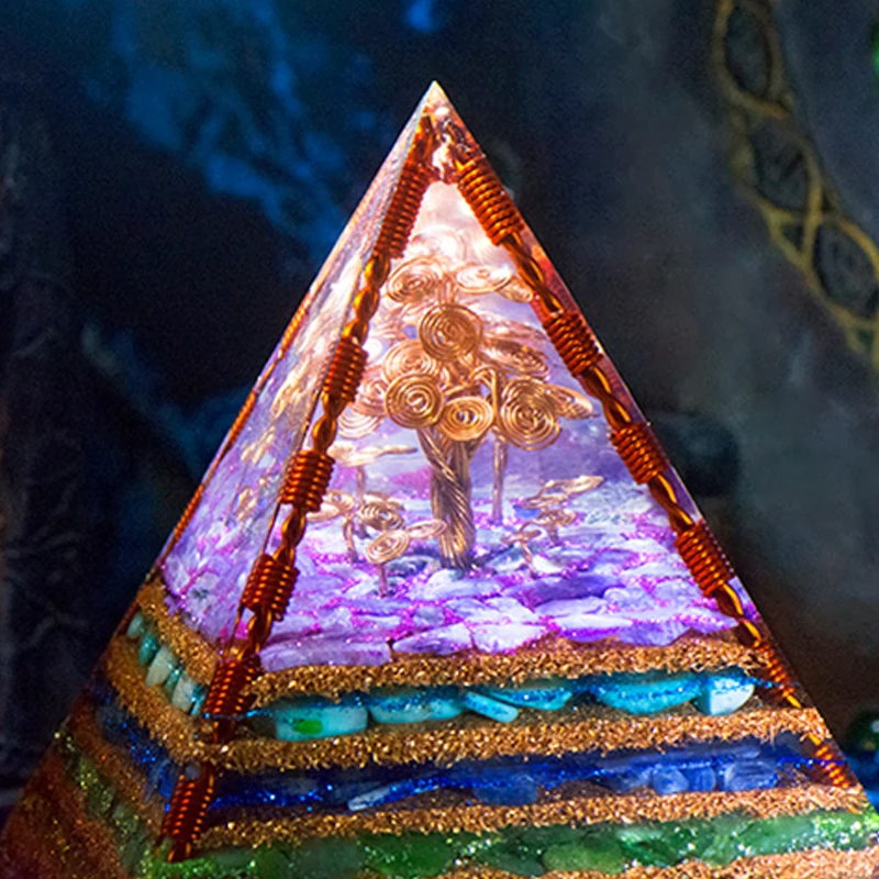 Tree of life Orgone Pyramid: Tree of life the meaning as a spiritual symbol, its branches stretch to the sky, its roots go deep into the ground, and the tree of life represents the connection between heaven and earth and between eternal life which reflect and symbolize many aspects of life. And pyramid energy is a mysterious electromagnetic which can reduce the negative effects of electromagnetic radiation, improve memory and thinking ability, promote physical strength and energy.