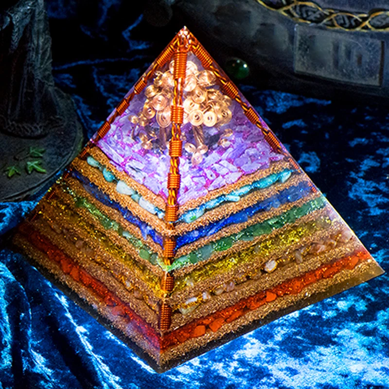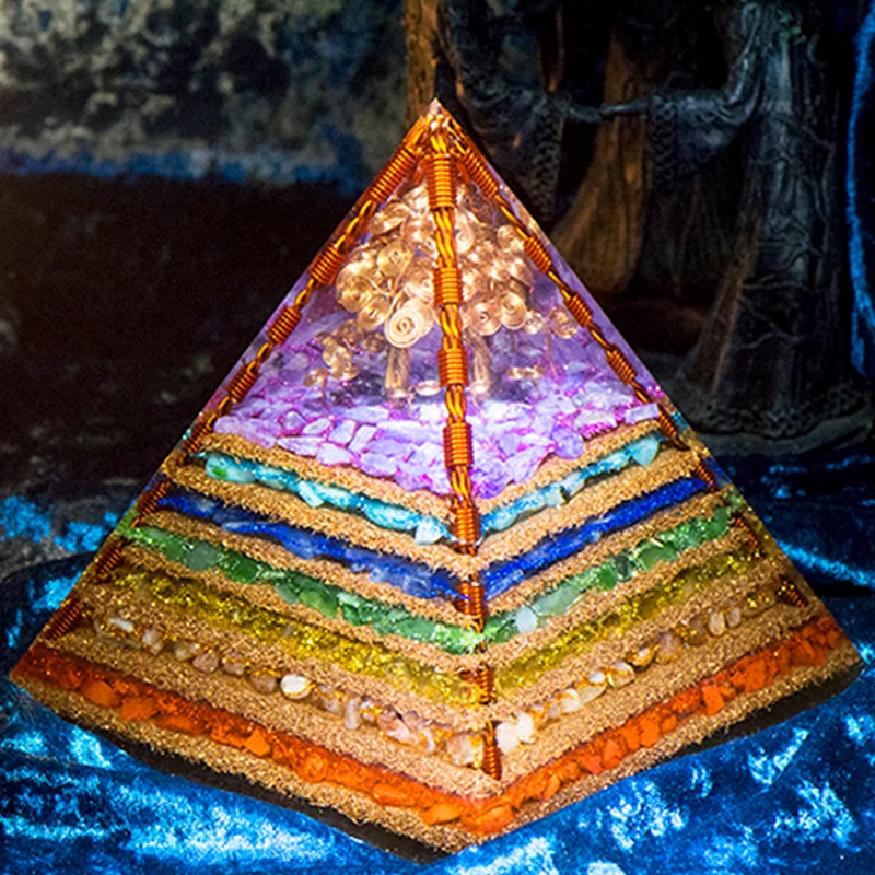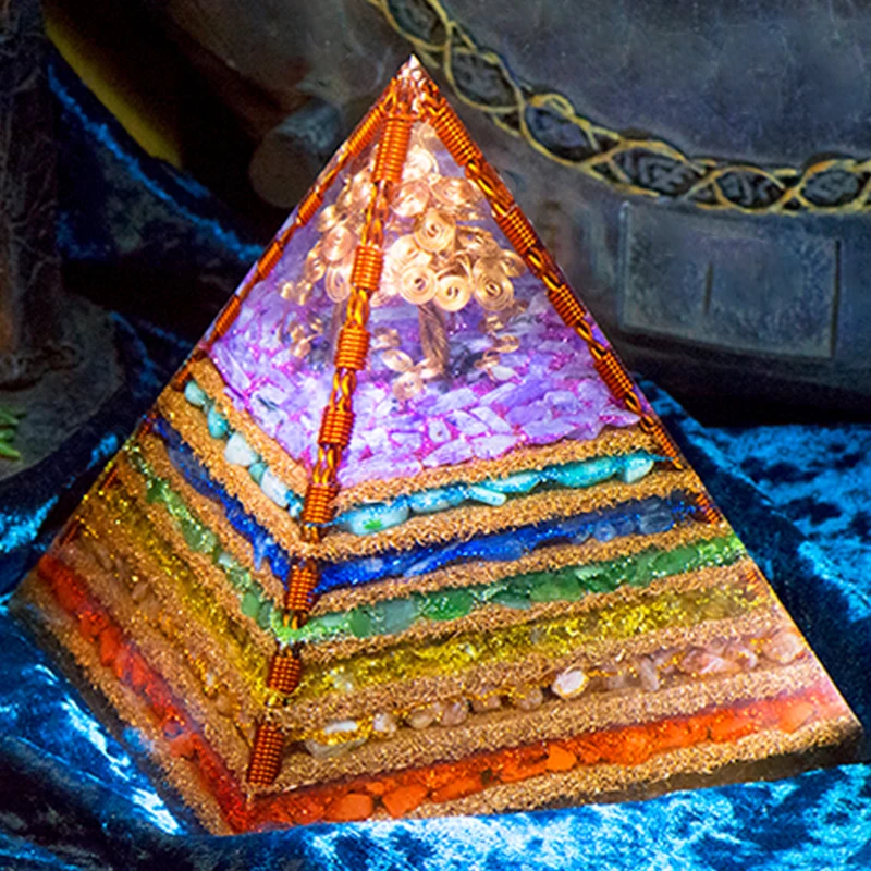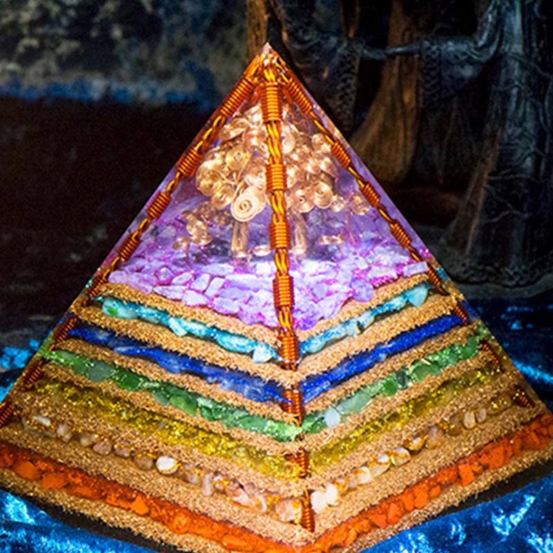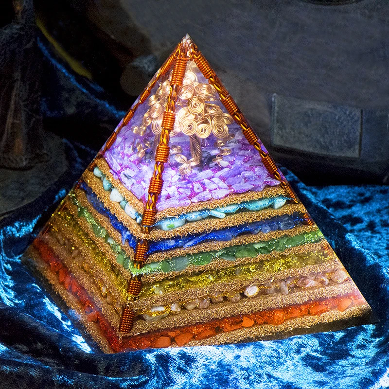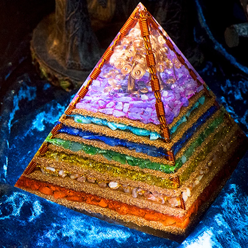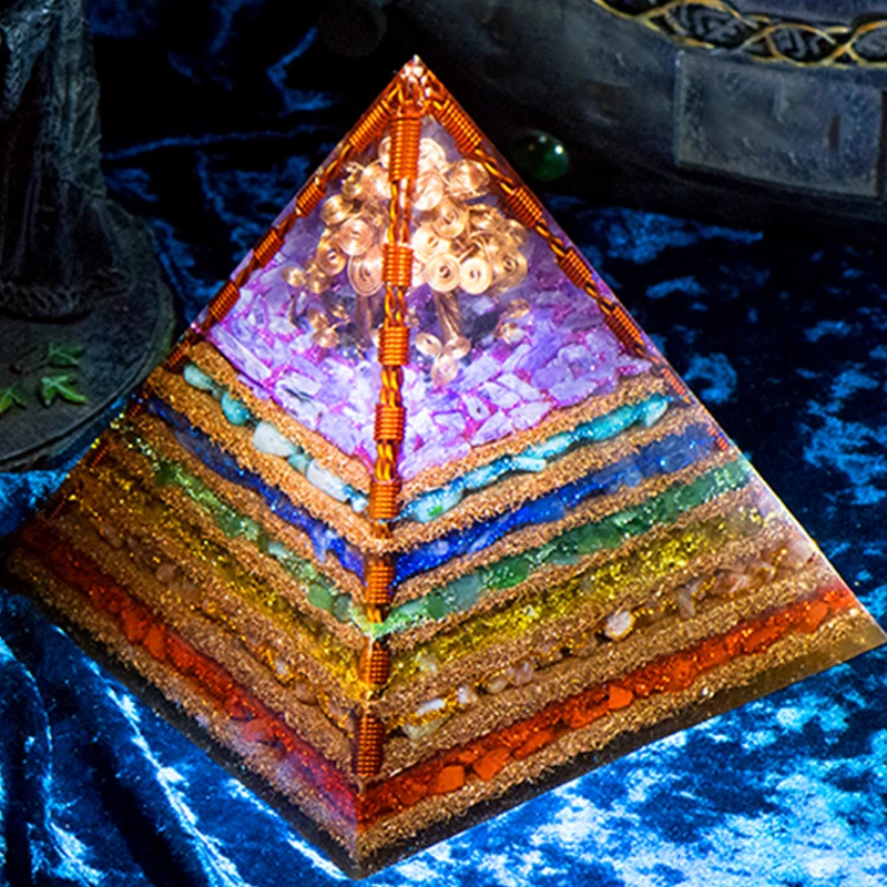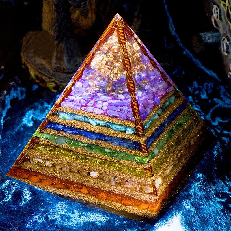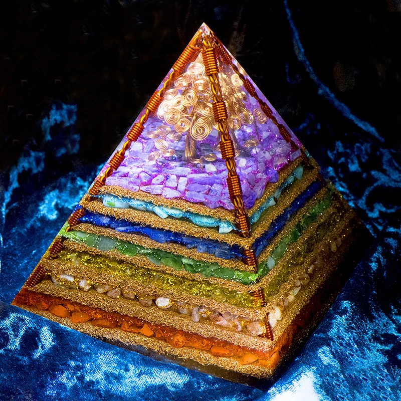 7 Chakra Layered Natural Stone Orgone Pyramid Crafts Extraordinary Tree of Life Healing Crystal Orgonite Tower Energy Generator