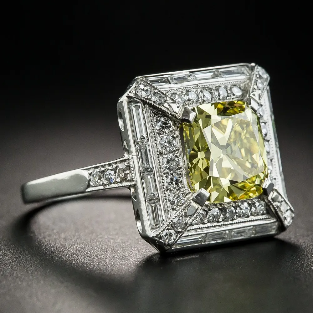 925 Sterling Silver Beautiful Women Wedding Rings 2ct Created Light Yellow Spinel With Micro Paved Clear Zircon Ring For Girl