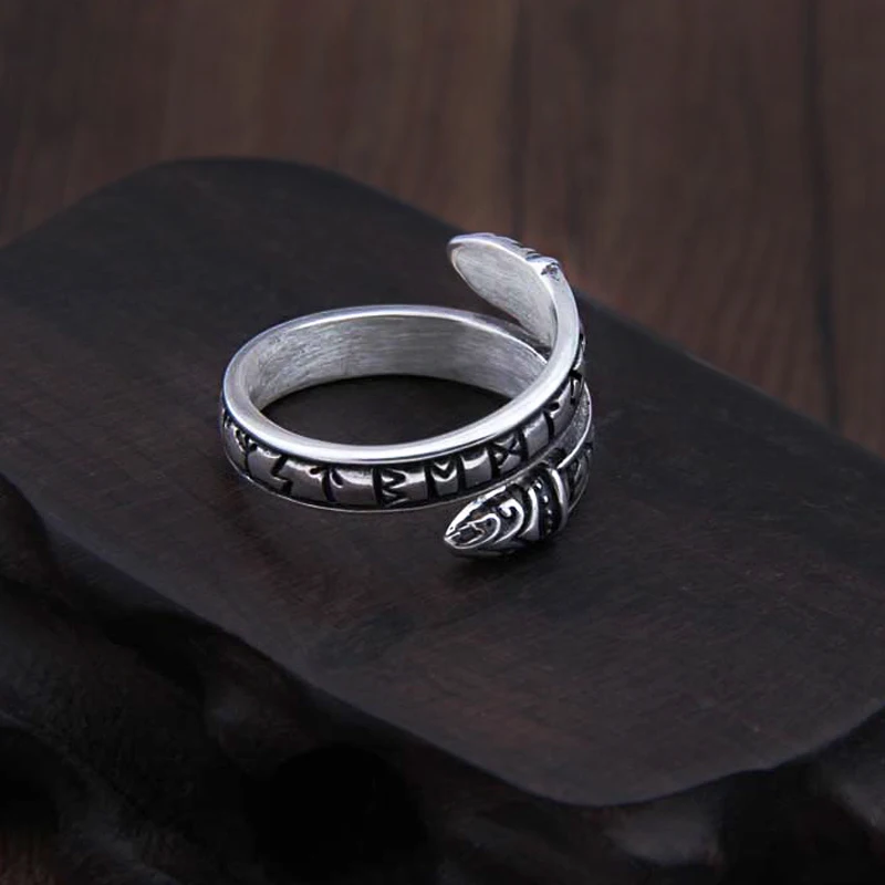 925 Sterling Silver Viking Dragon Rune Ouroboros Ring Adj…