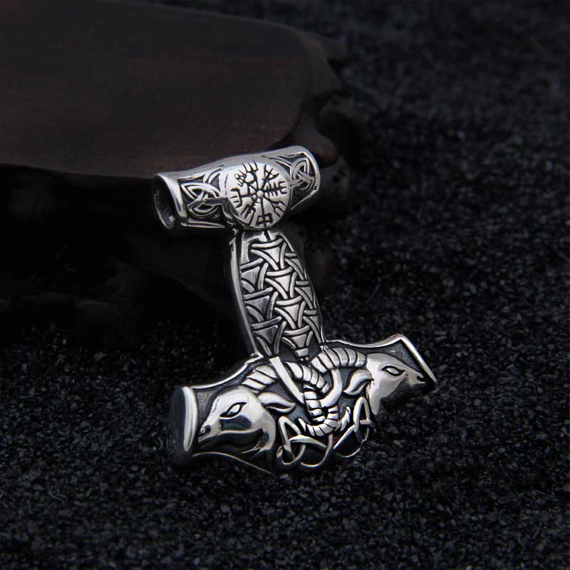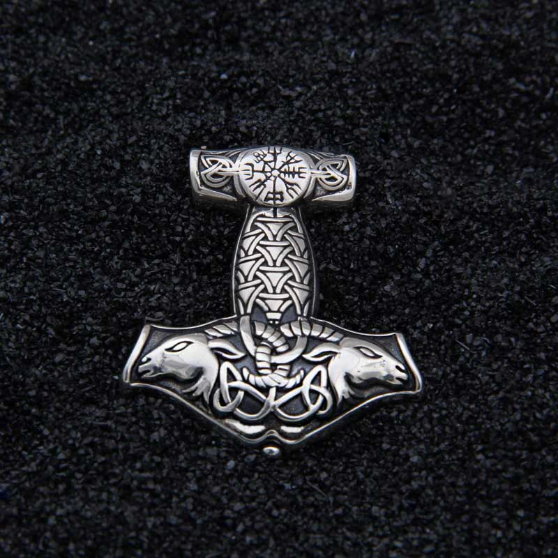 Name:925 Sterling Silver Viking Goat Viking Thor hammer Pendant Nekclace with real leather and stainless steel keel chain as gift