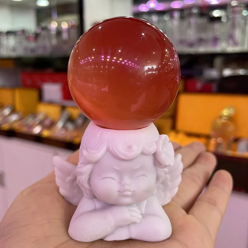 Baby Angel Crystal Ball Holder Sphere Stand Display Base Miniature Figurines Resin Sculpture Desk Ornament Photo Home Decoration