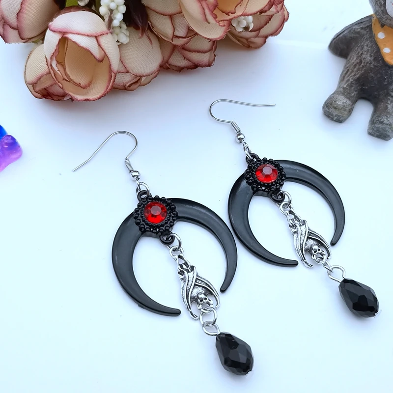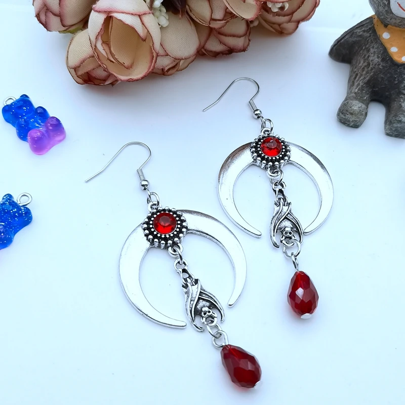 Bat Red Bead Pendant Earrings
