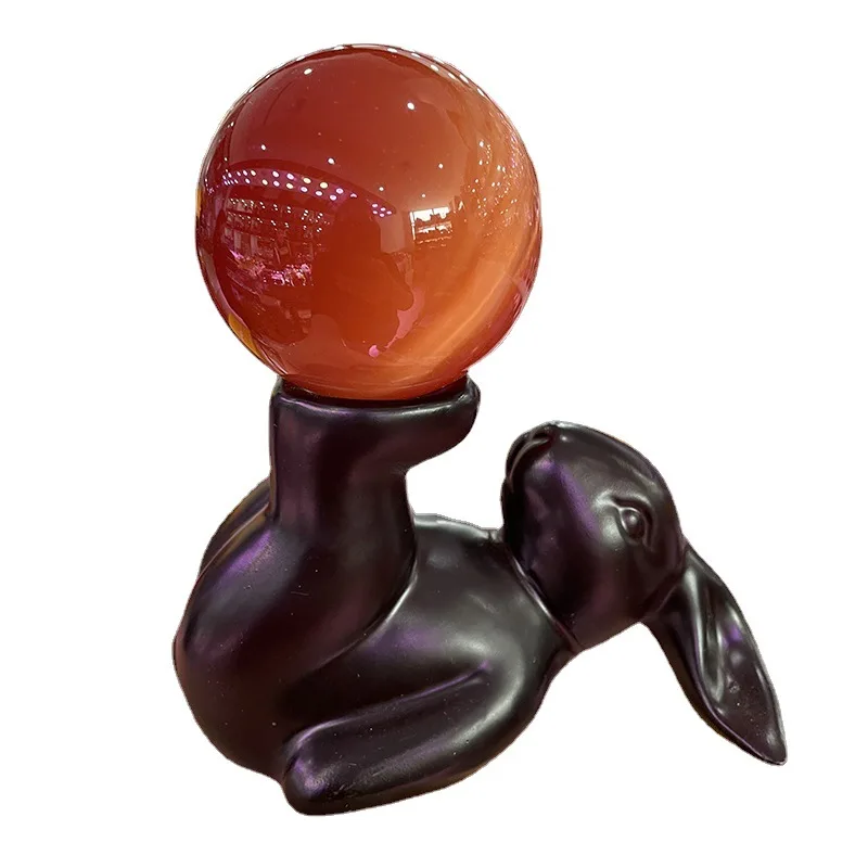 Black Bunny Sphere Stand Display Base Crystal Ball Holder Miniature Figurines Room Decor Resin Desk Ornament Easter Decoration