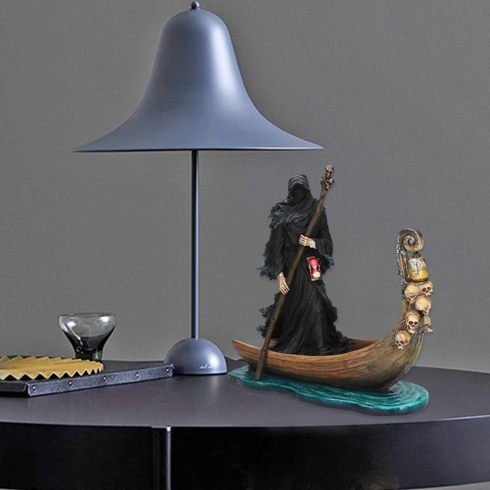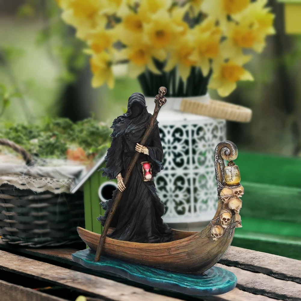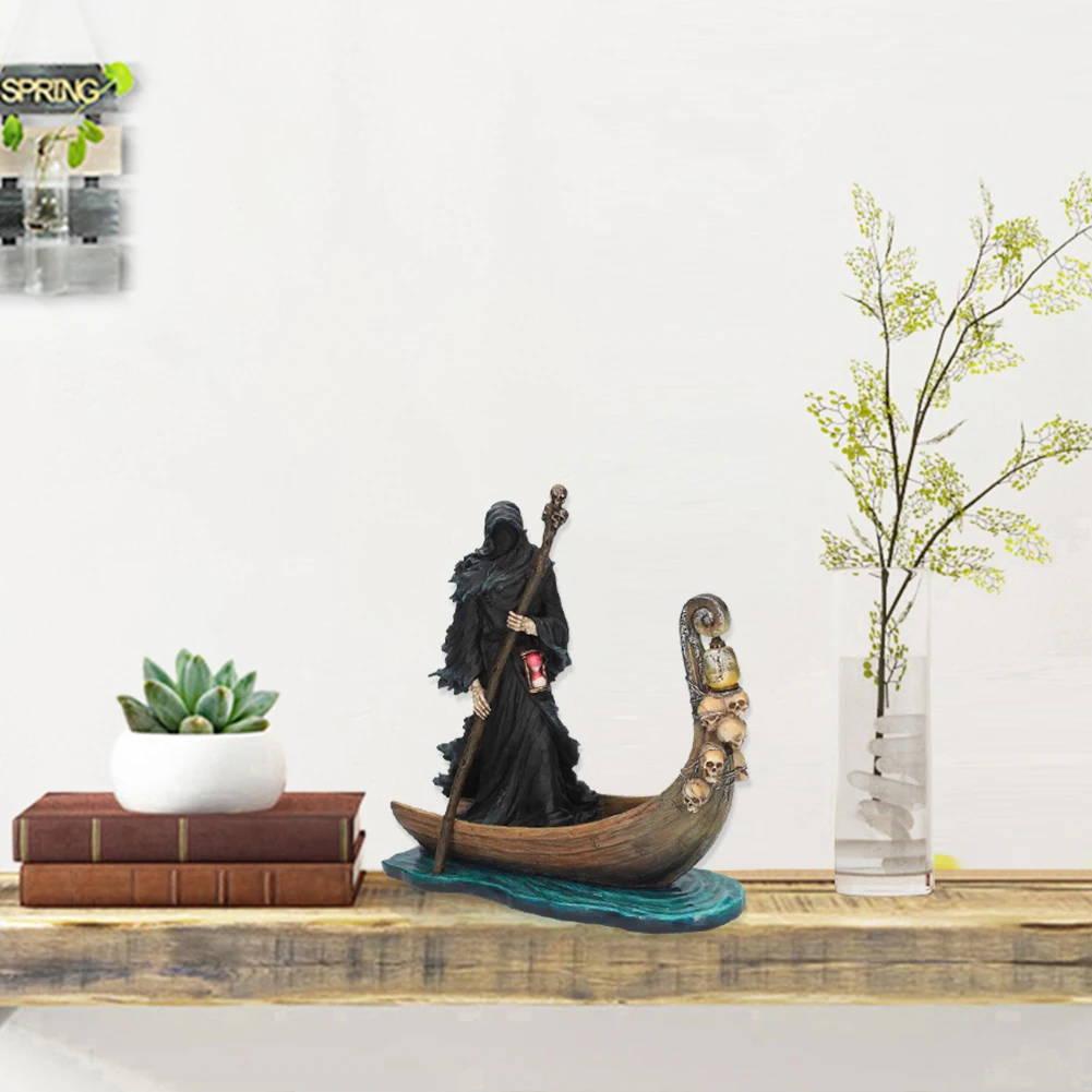 Black Man Rowing Boat Sculpture Resin Outdoor Garden Home Black Man Boating Figurine Furnishing Living Room Figure Statue Decoration
