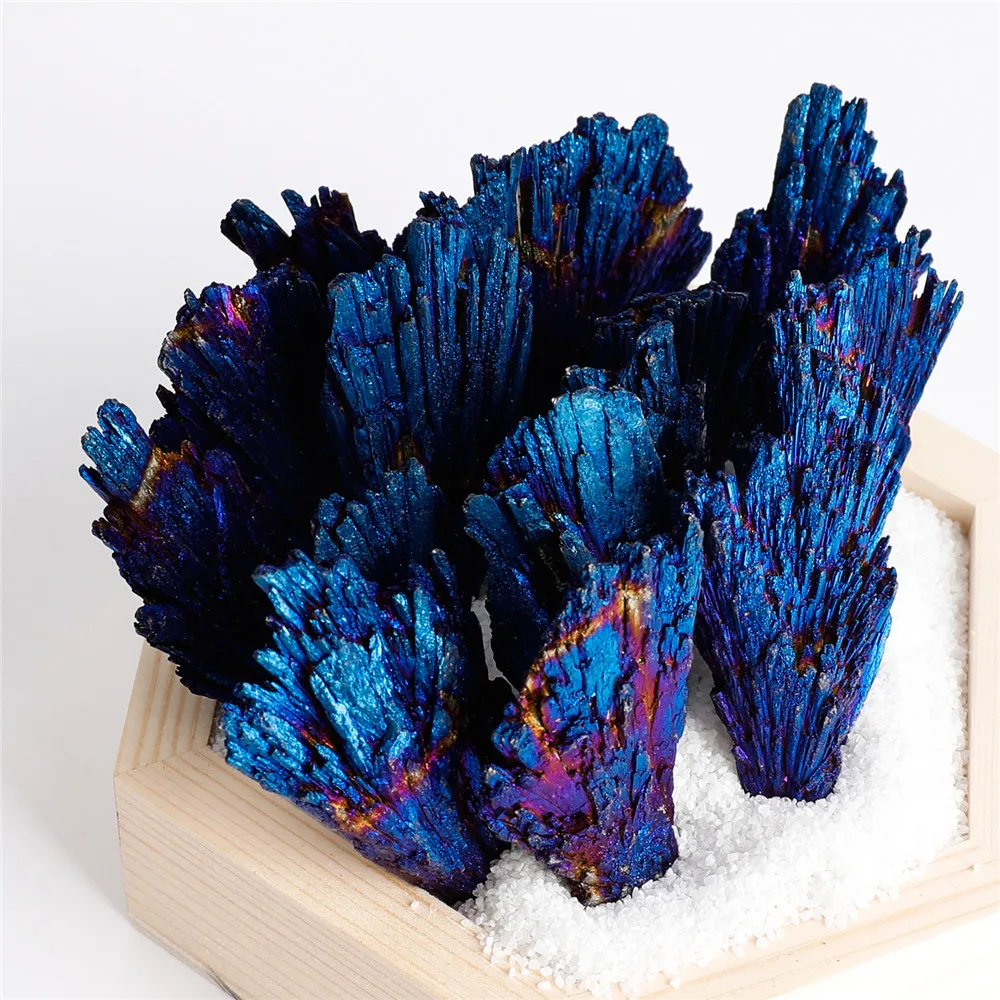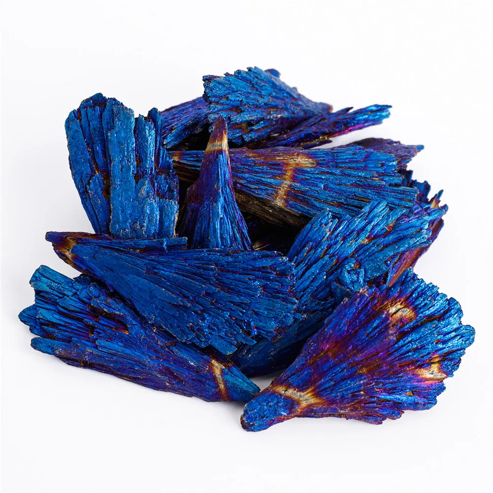 1pcs Blue Colors Natural Stones and Minerals Blue Titanium Black Tourmaline Aura Quartz Crystal Peacock Tail Decoration Crafts