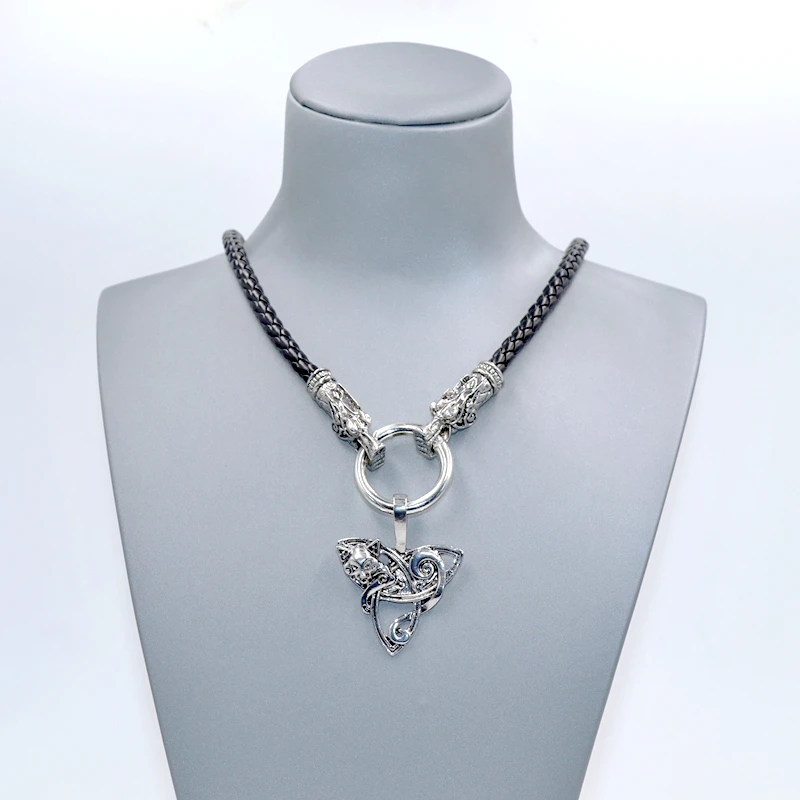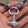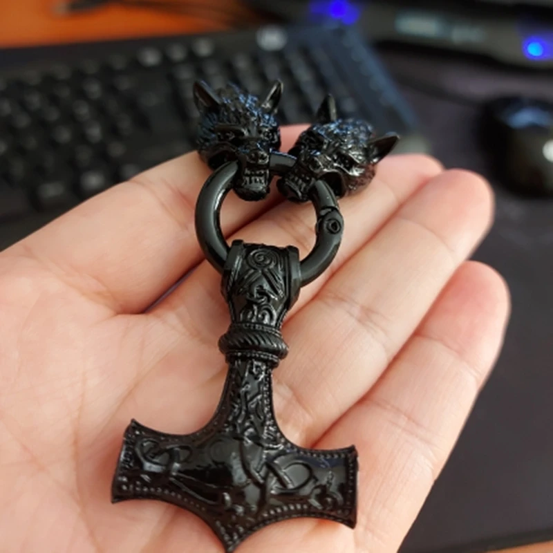 Black Viking Odin Thunder Hammer and Roaring Wolf Head Mjolnir