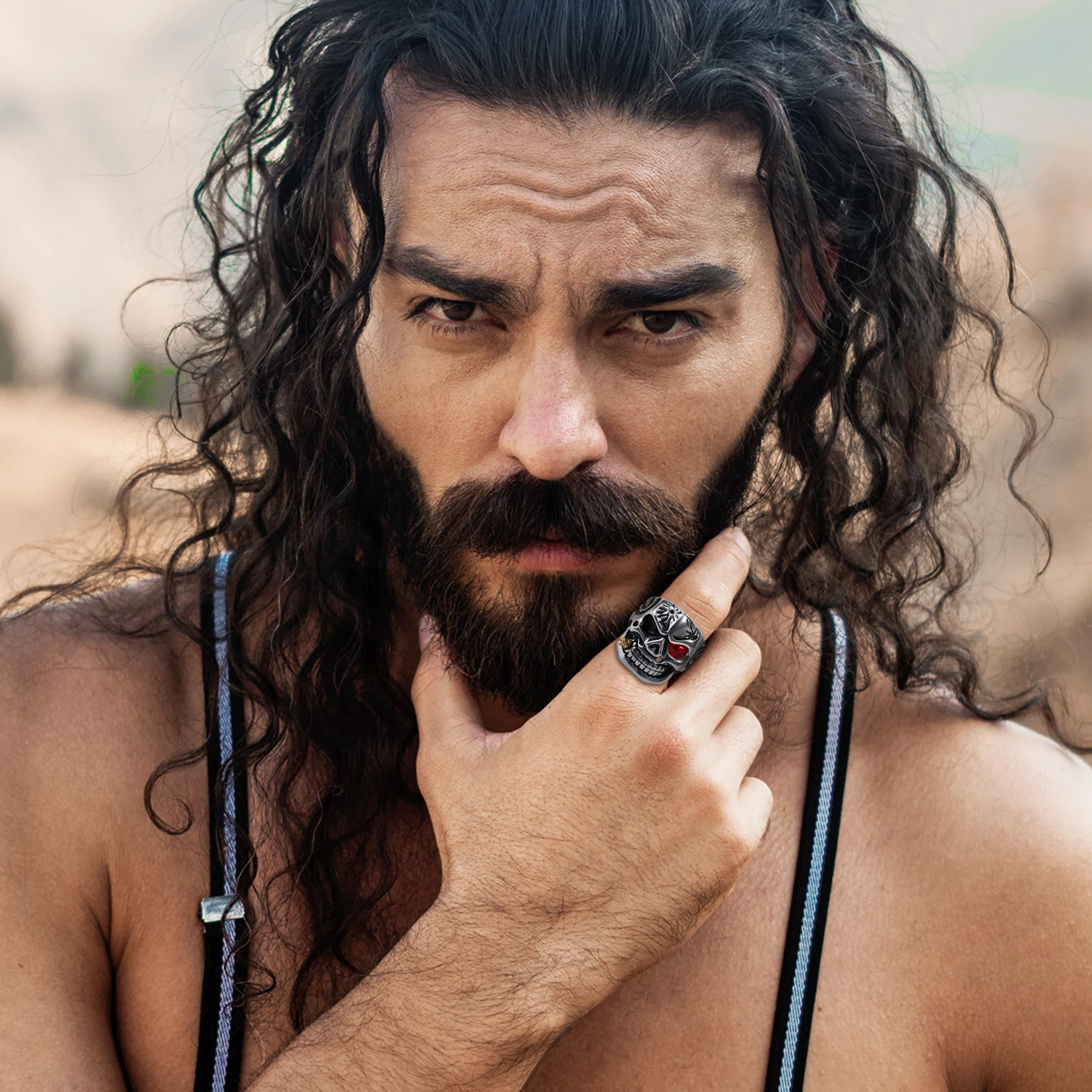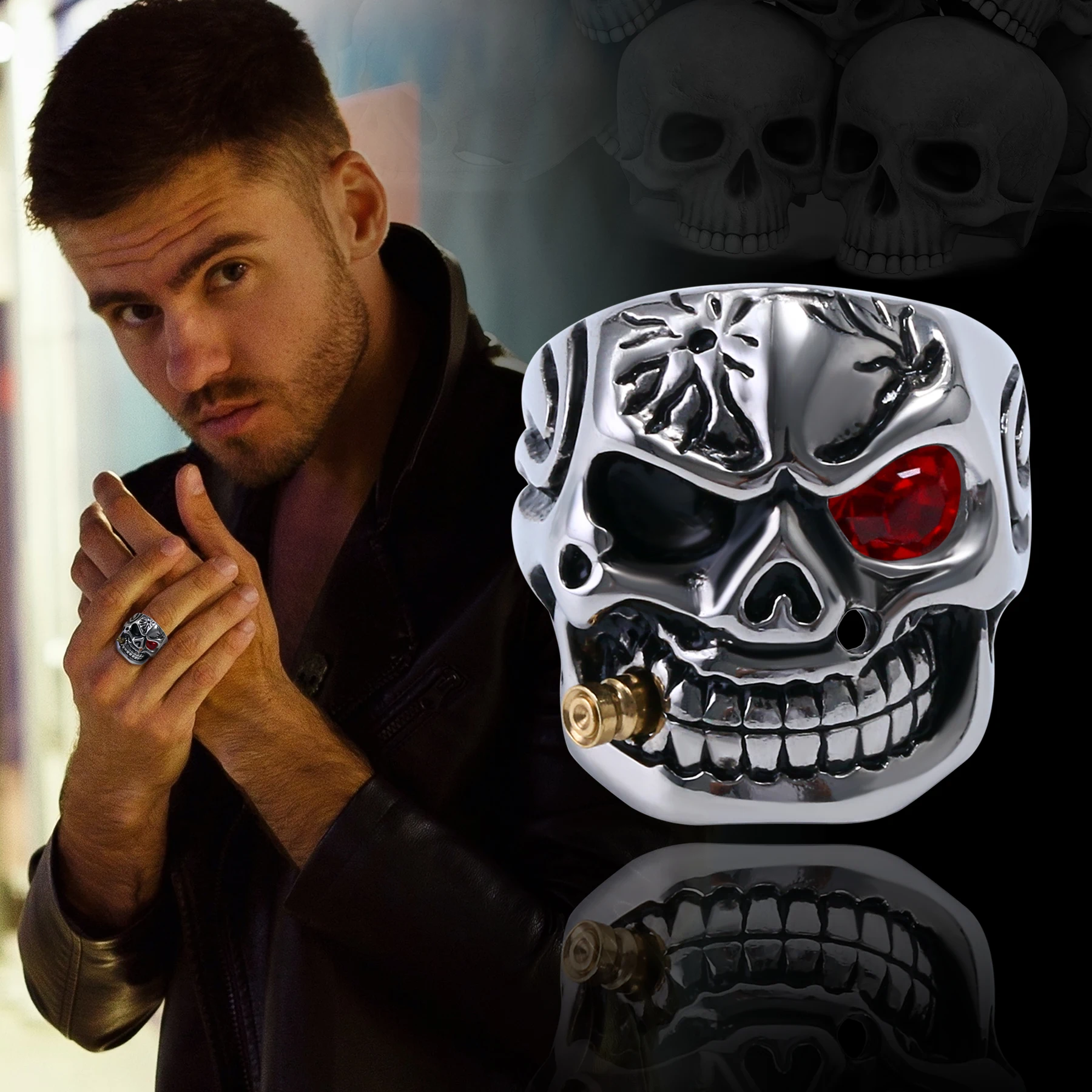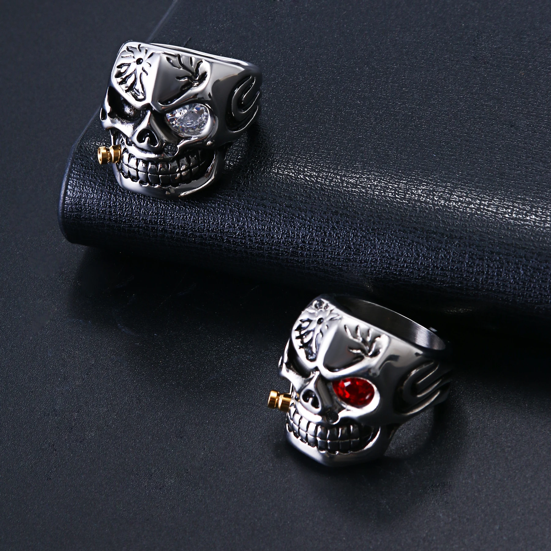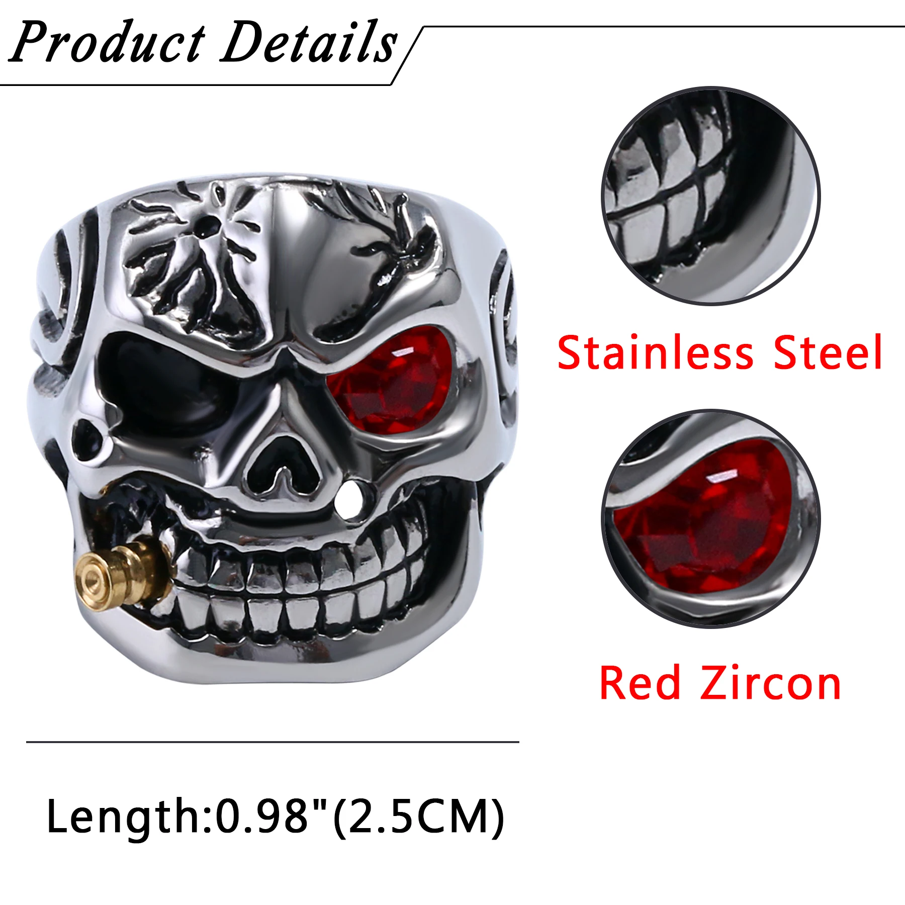 BONISKISS Halloween Skull Punk Cross Ring Biker Christmas…