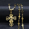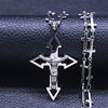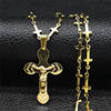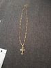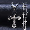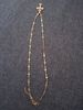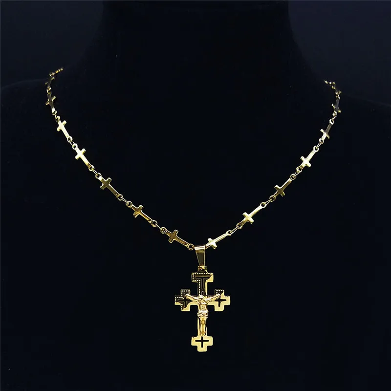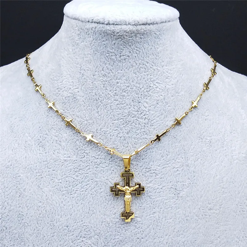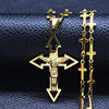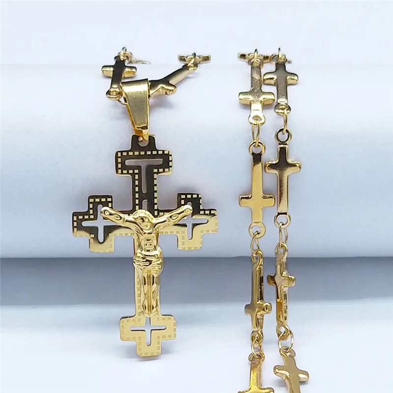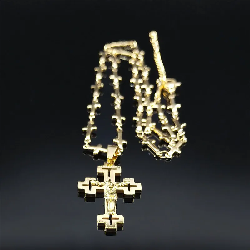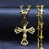 Travelled about 3 weeks, congrats. Well packed and protected, inside everything ok. Nice looking item, stainless steel, gold colour. Necklace very fine and delicate made, 45+5 cm long, only missing conecting ring on end, so it's pretty hard to put lobster on. Pendant extremely well made, excellent details, even text is engraved on cross and it's only 3 cm high! No mistake, and great design. Congrats on this fine work. Bravo Seller and item very recomended, transport also. Very satisfied