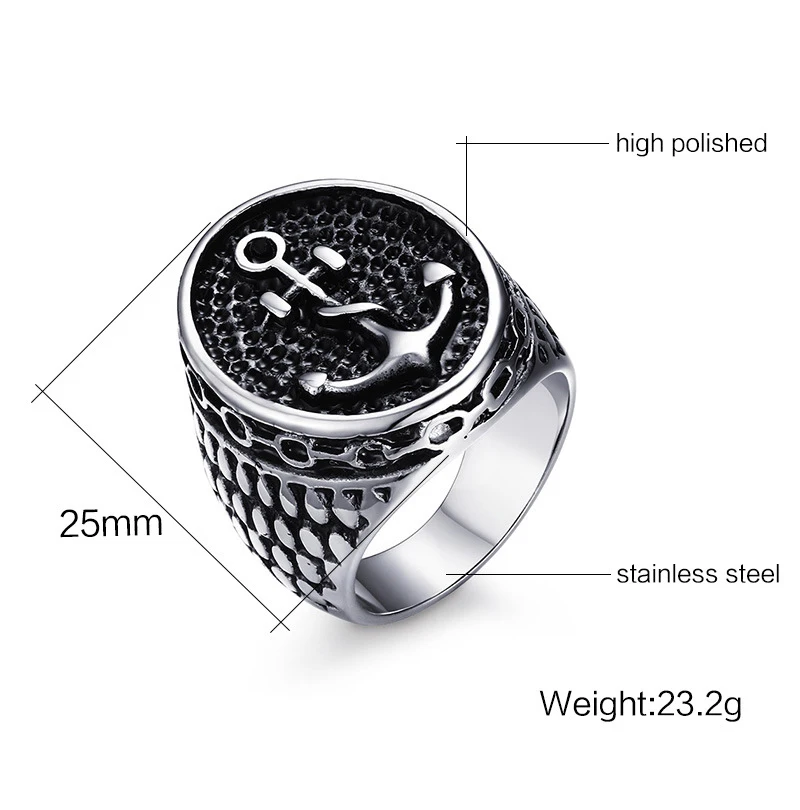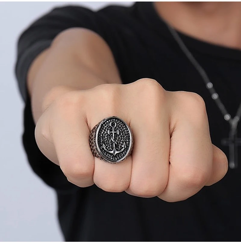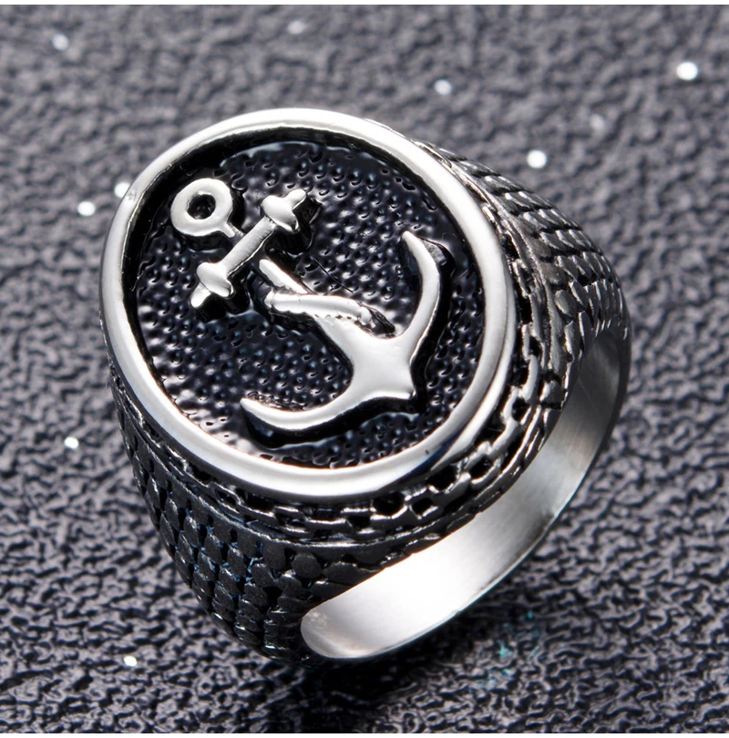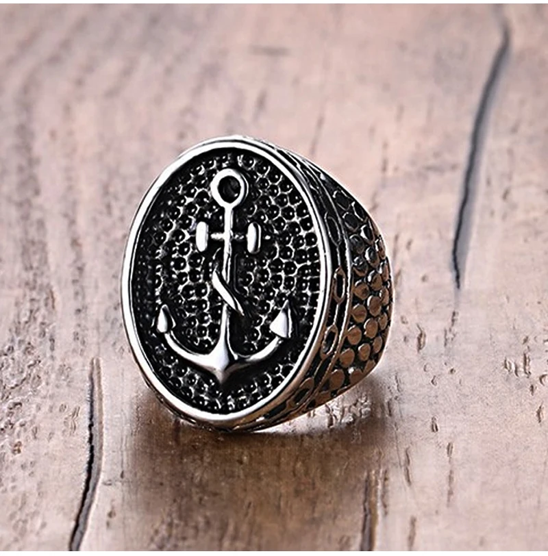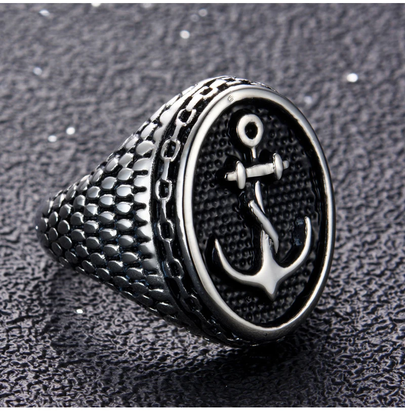 Classic Bumps Anchor Signet Ring Men Women Punk Motor Bik…