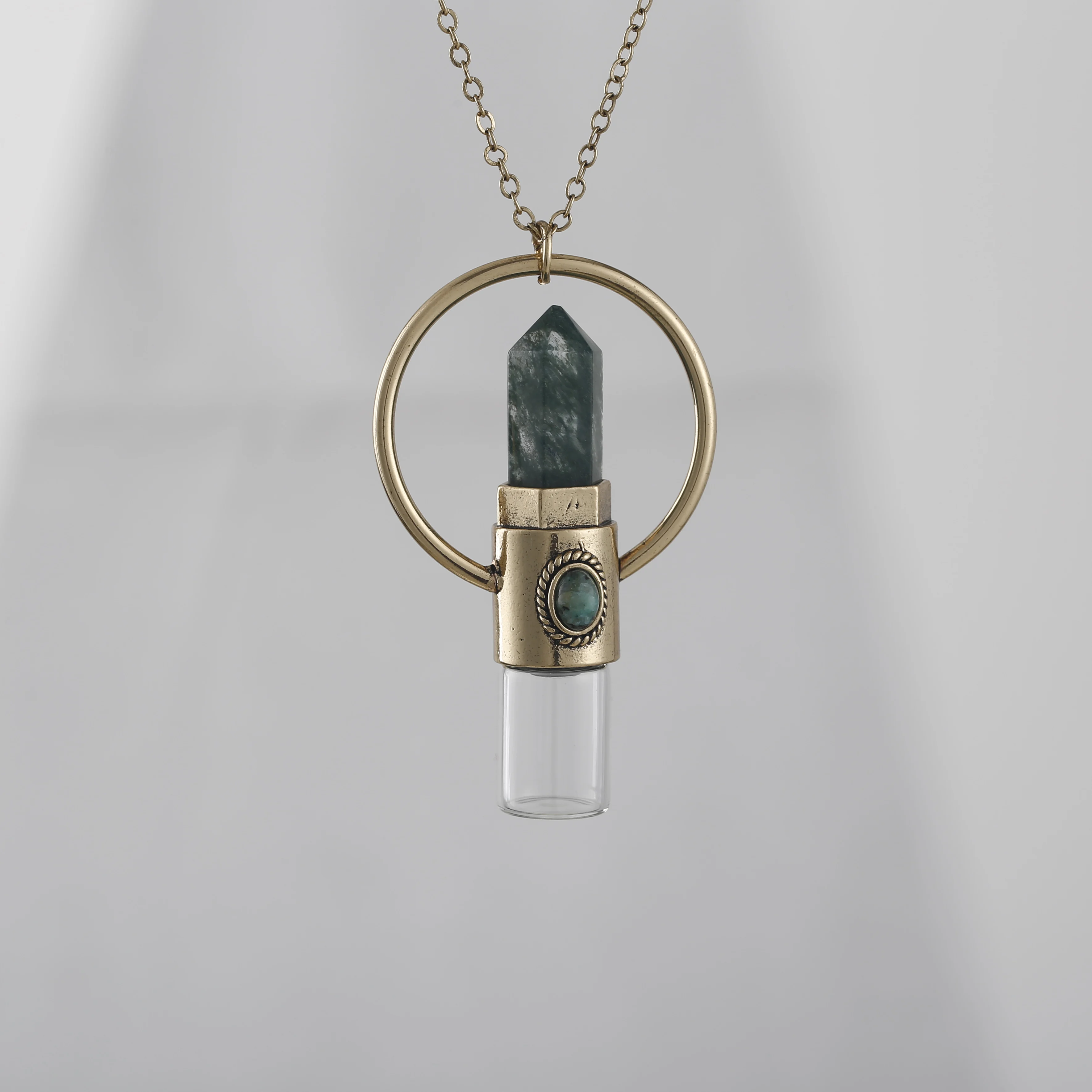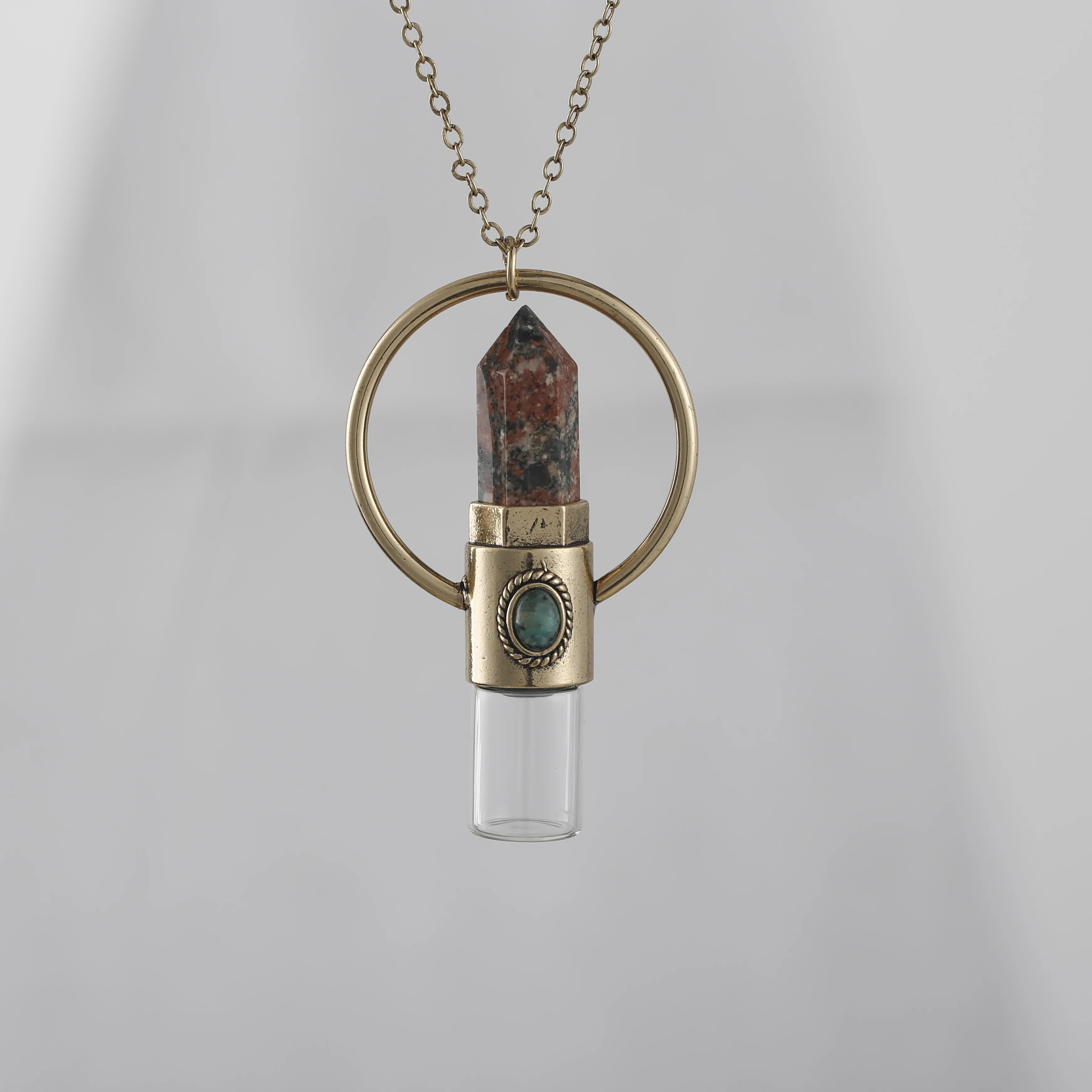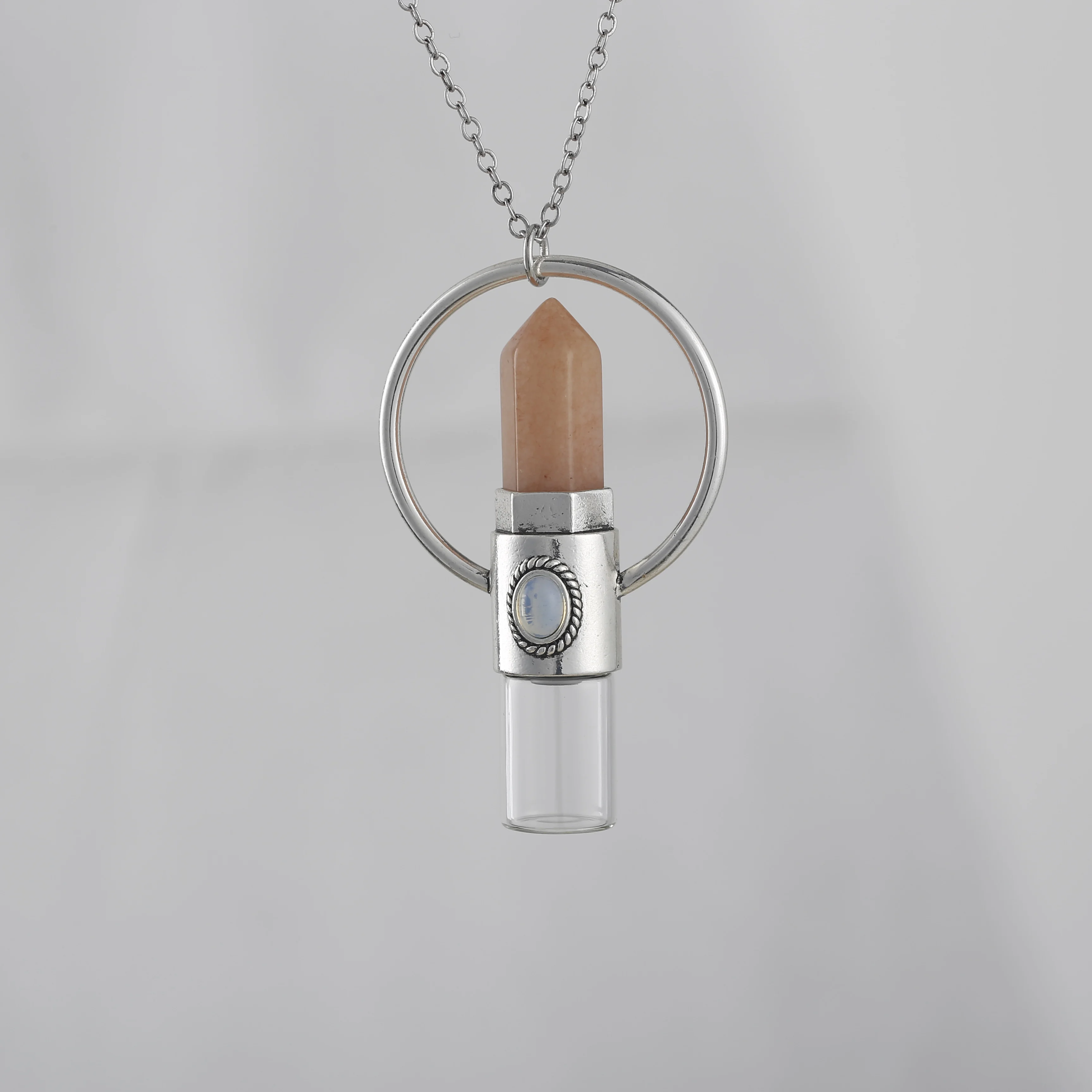 Classic Women Amethysts Quartz Citren Prism Point Perfume Bottle Pendant Gold Chains Necklace Jewelry