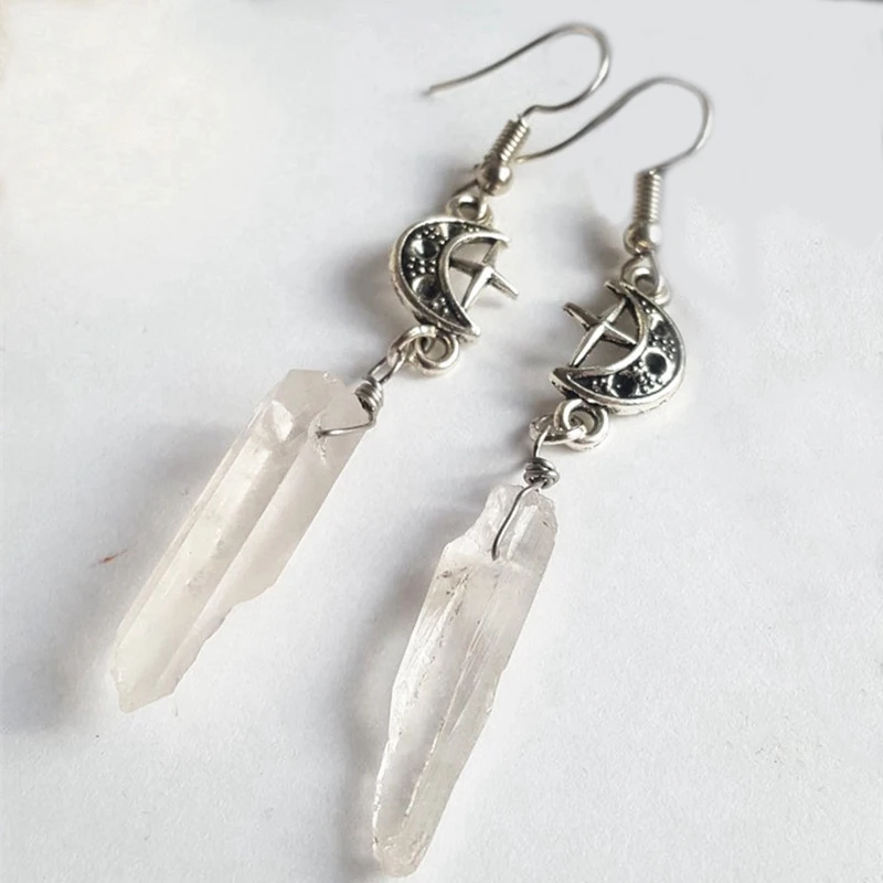 Clear Quartz Moon Earrings