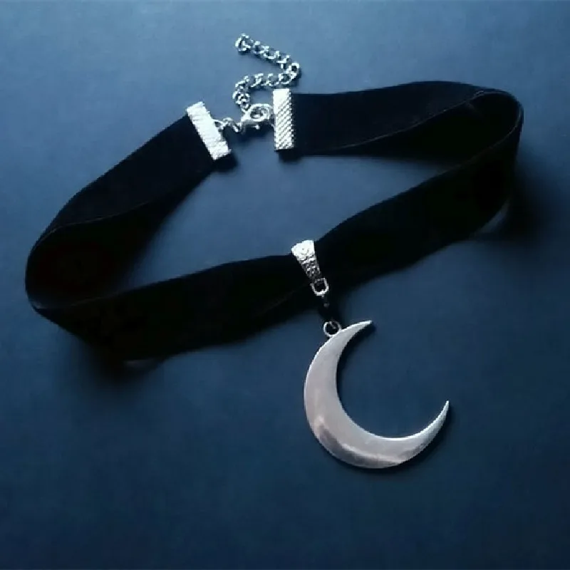 Crescent Moon Choker Thick Black Velvet With large Charm …