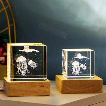 4/5cm Ocean Fish Crystal Ball with USB LED Light Sphere Stand Base 3D Inner Carving Glass Ball Desktop Ornaments Christmas Gift