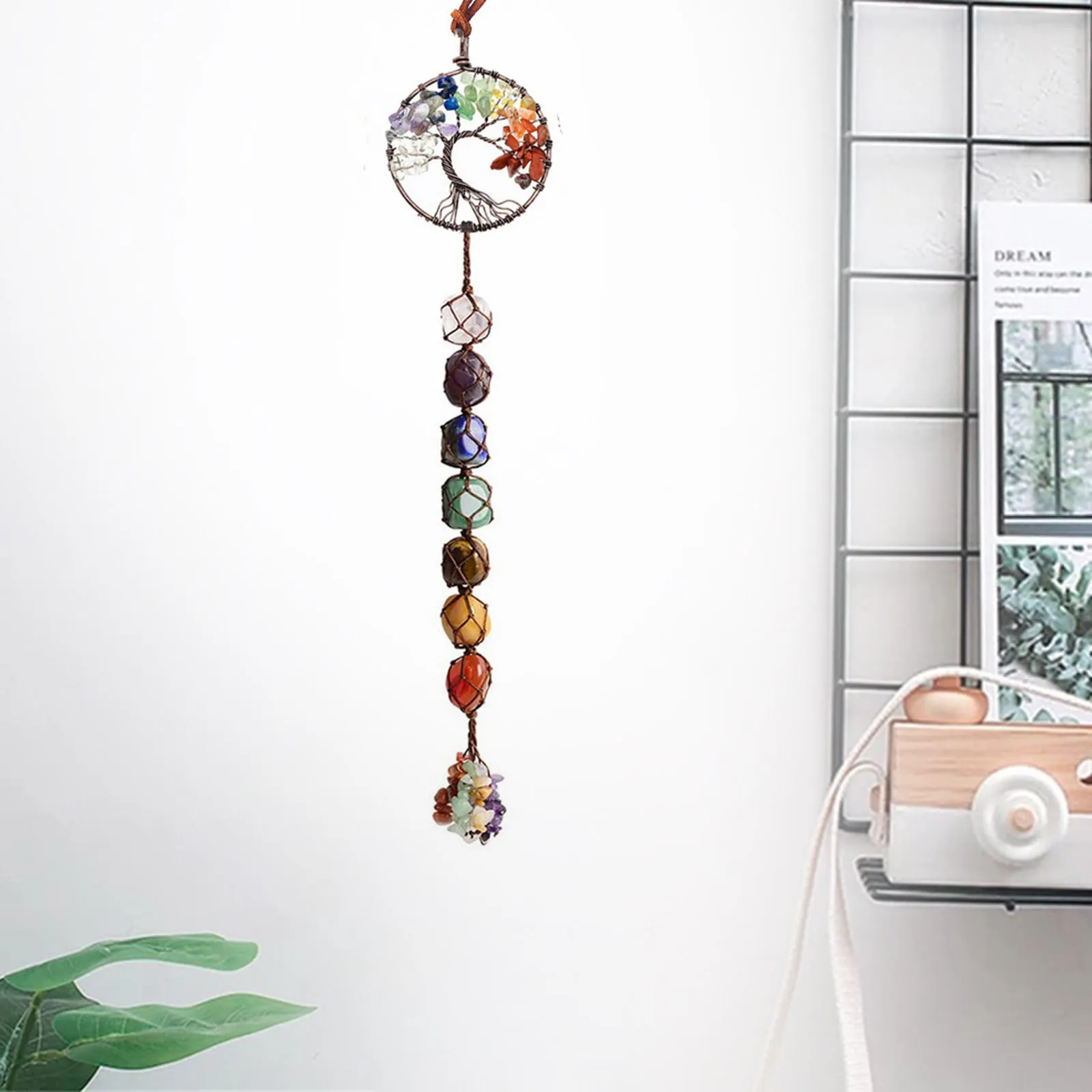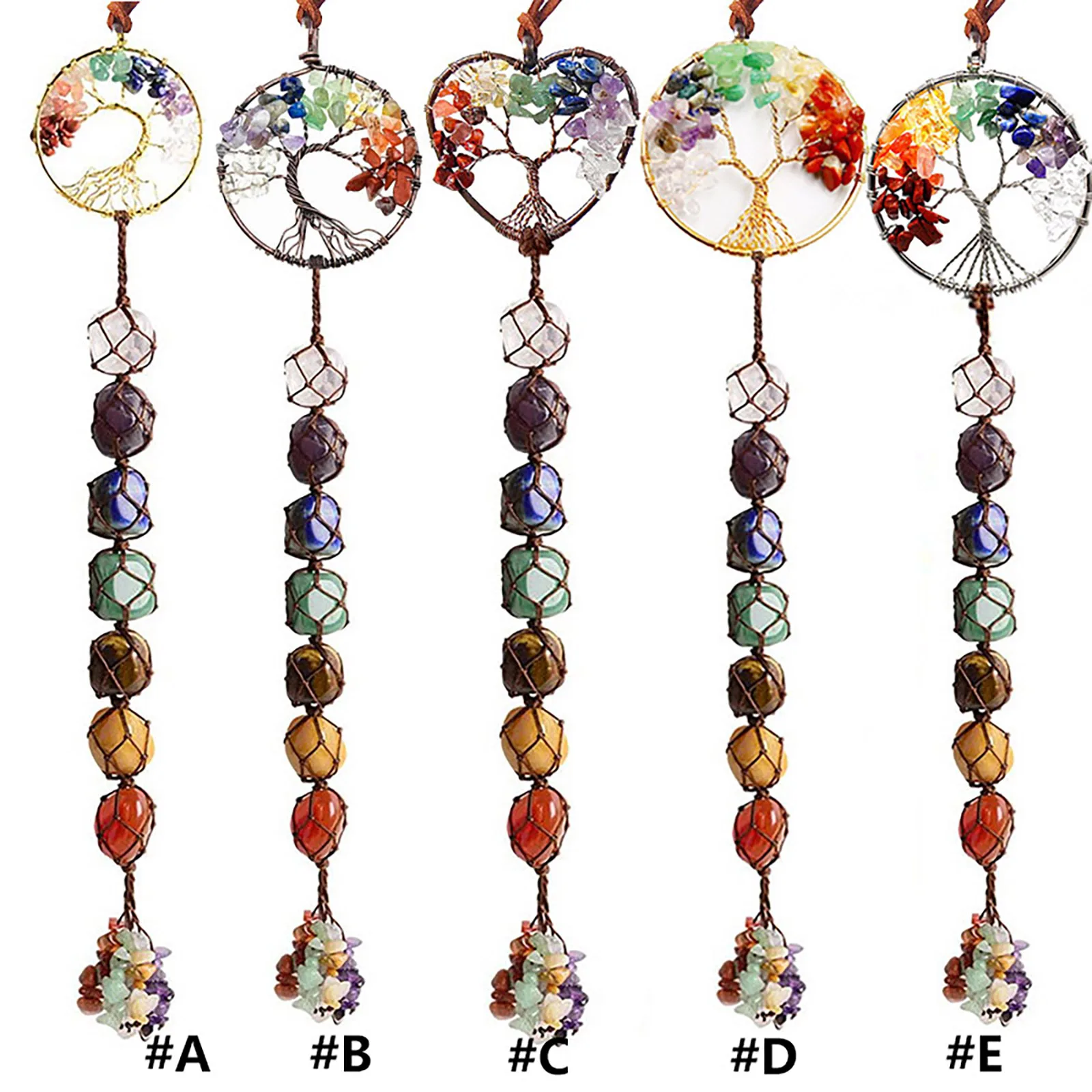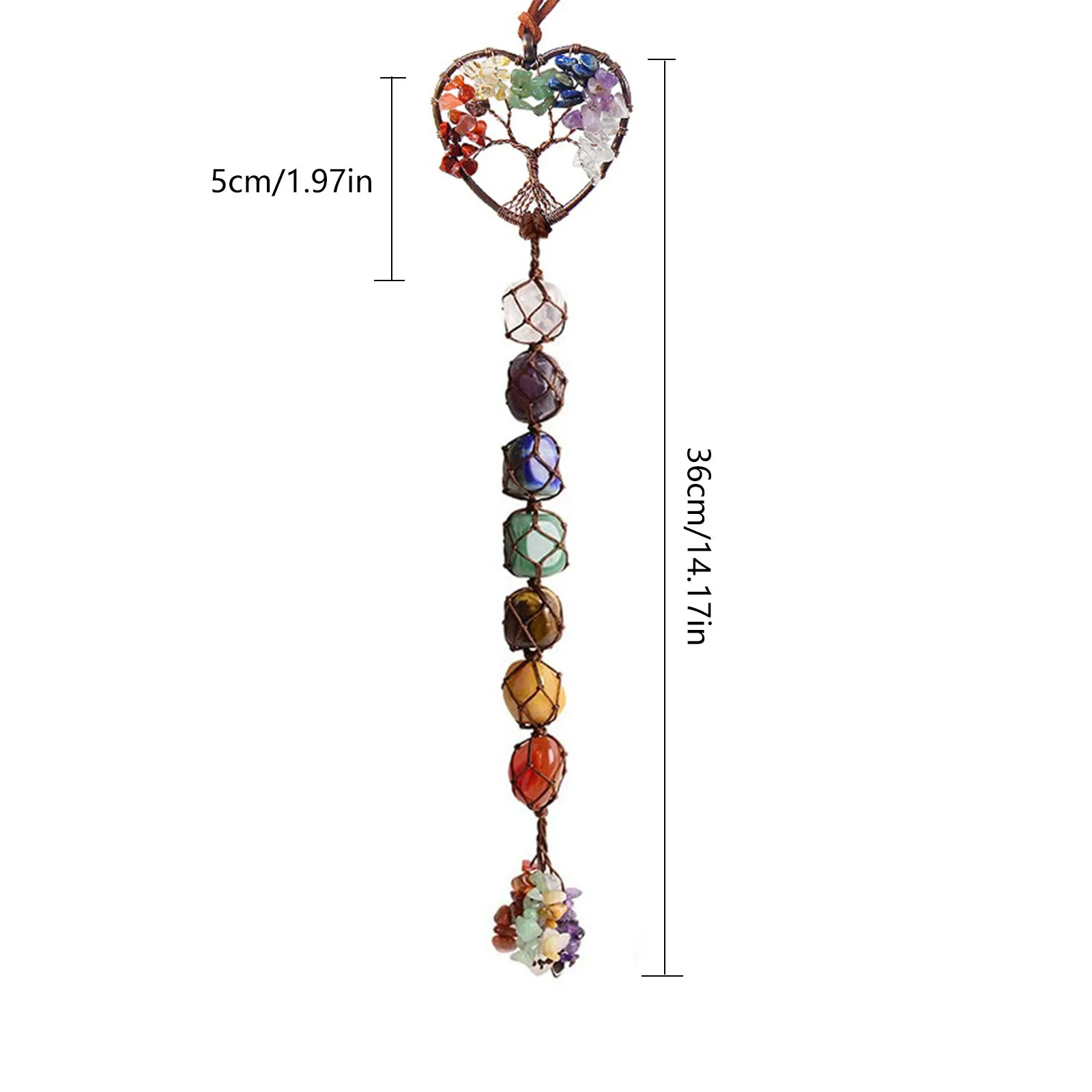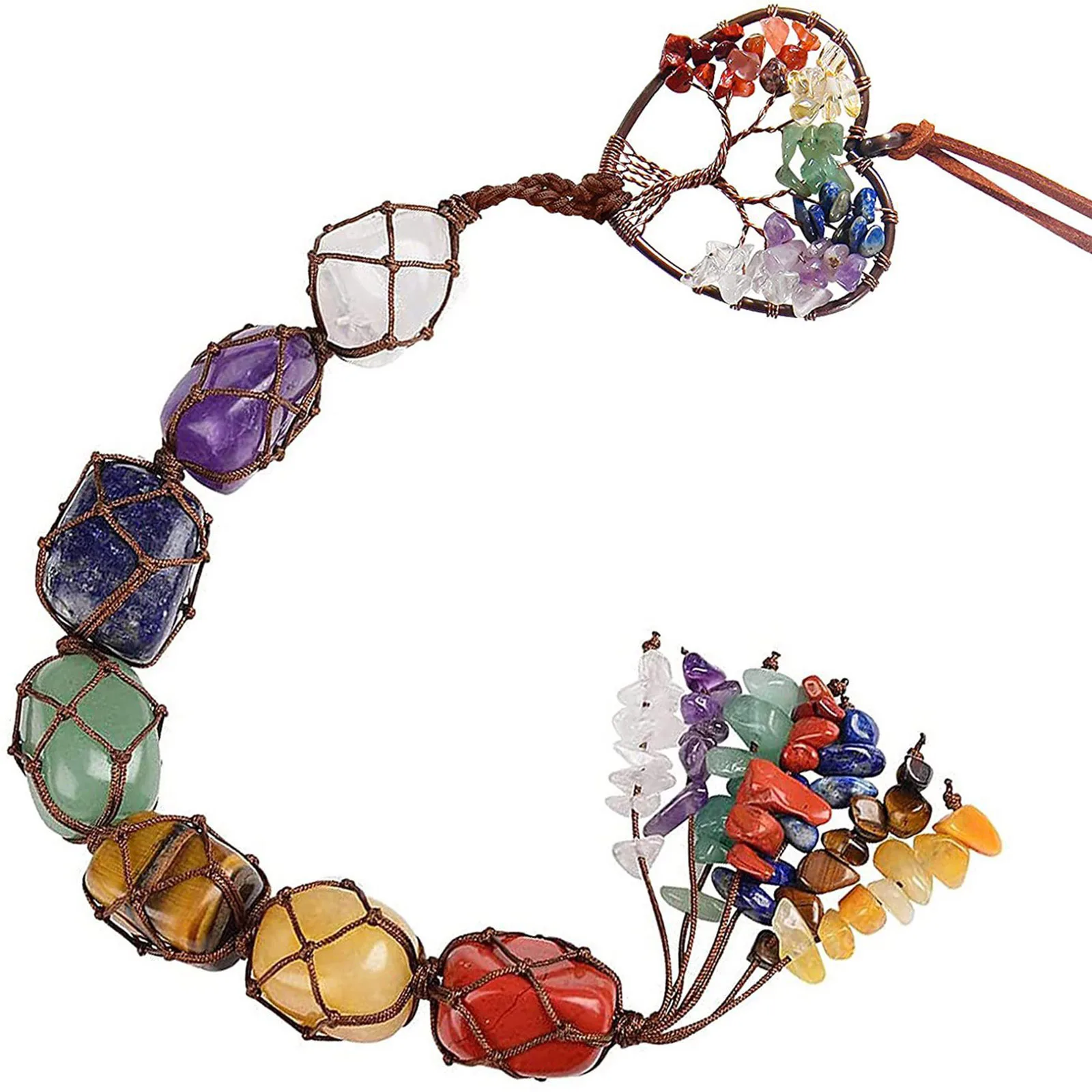 Seven-Color Crystal Original Stone, Hand-Woven Pendant, Natural Stone Tree of Life, Soul-Healing & Attract Good Things Ornament, Housewarming Gift for a Friend, Family Member or Loved One Specification: Note: