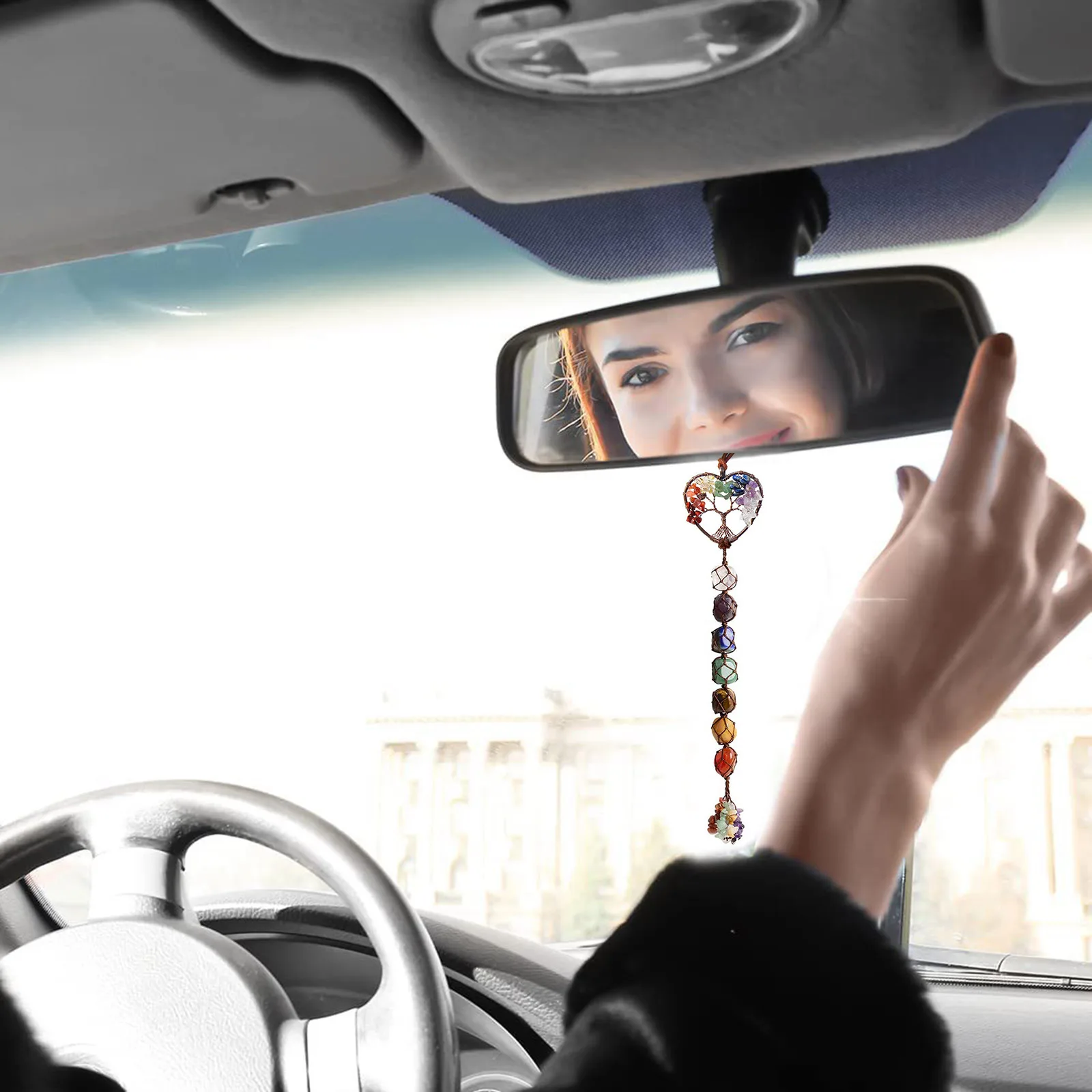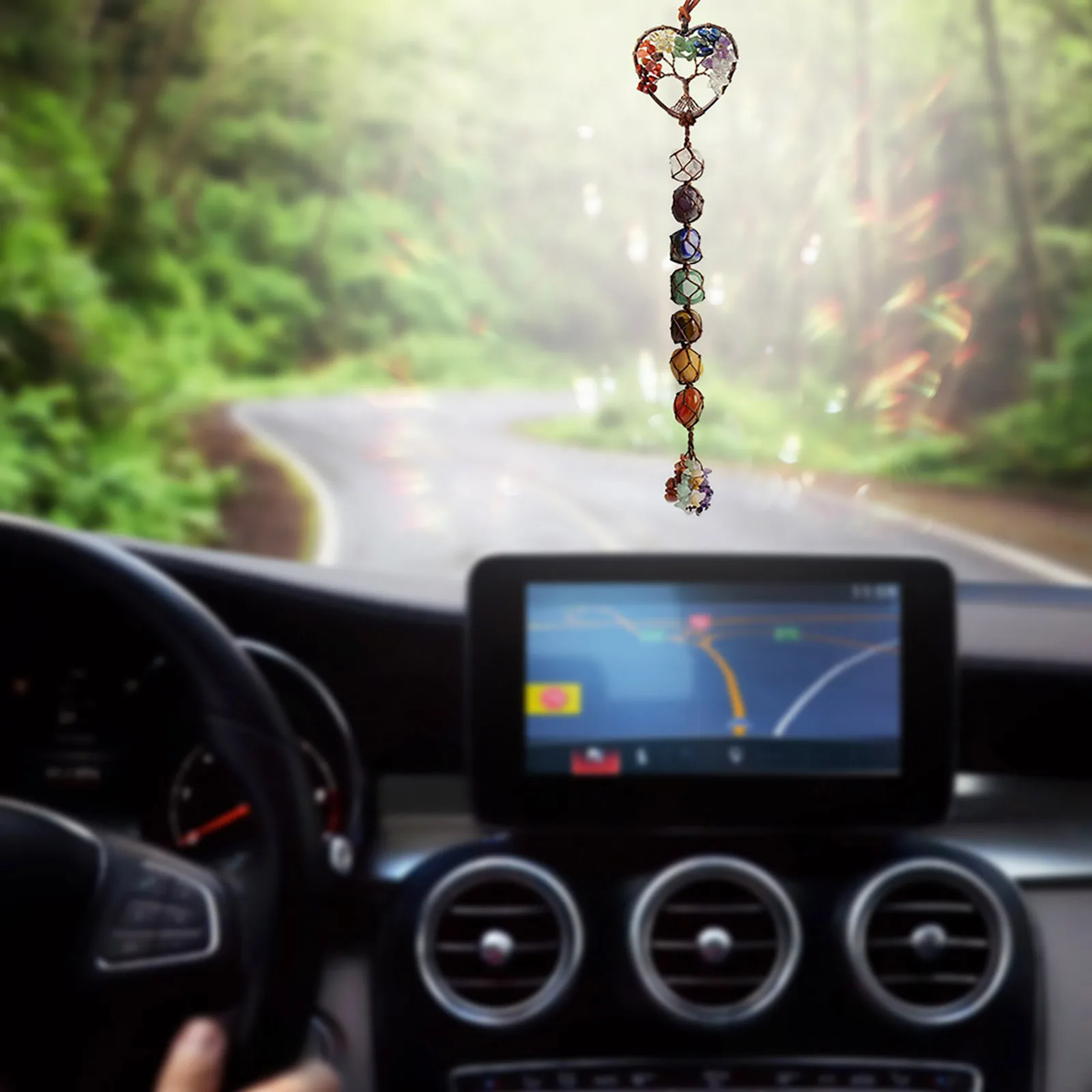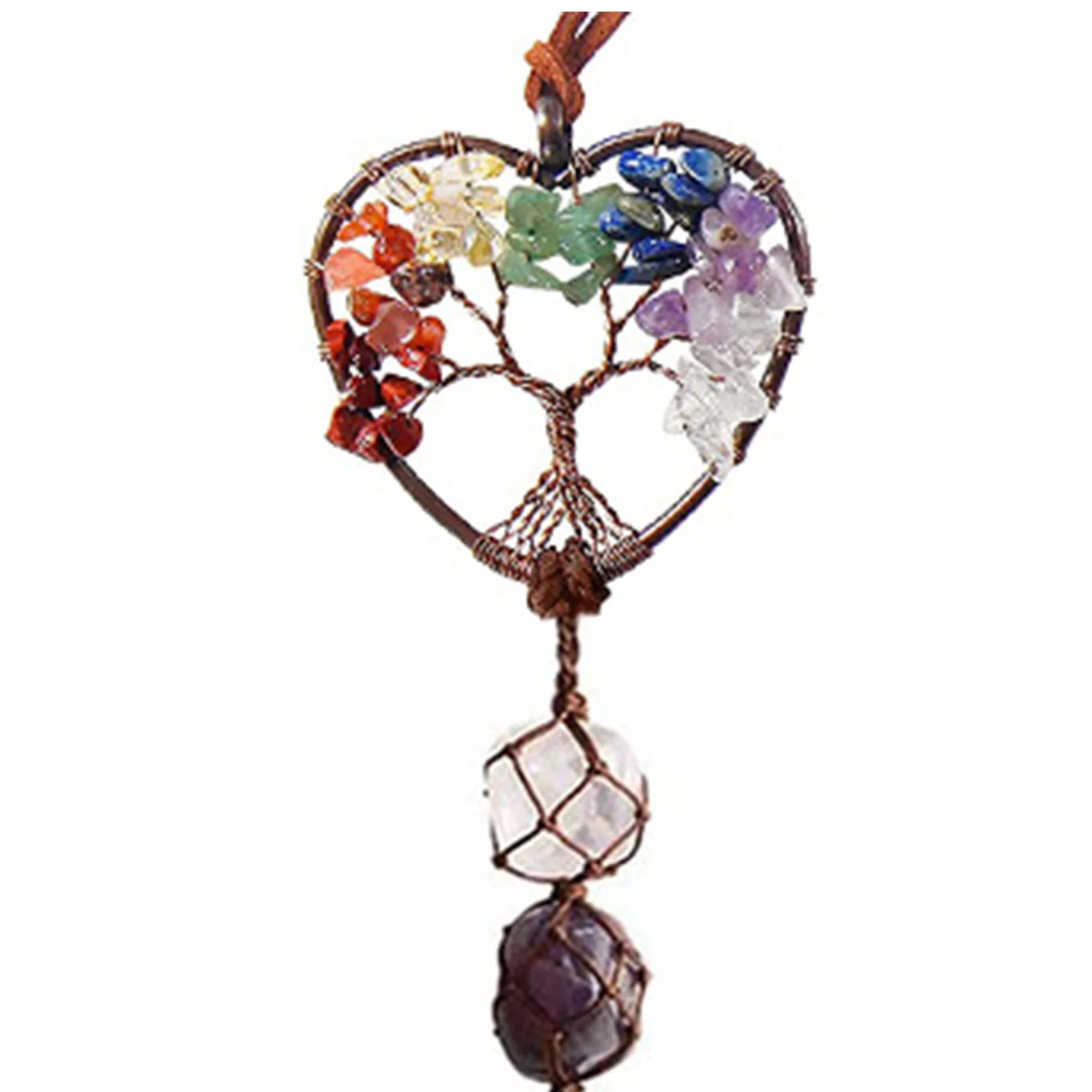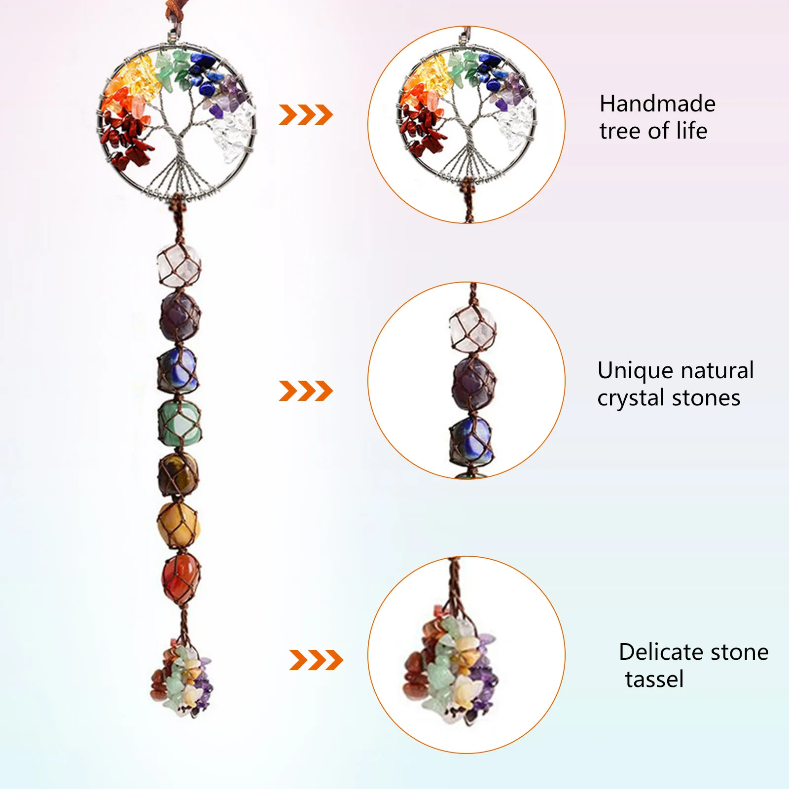 Seven-Color Crystal Original Stone, Hand-Woven Pendant, Natural Stone Tree of Life, Soul-Healing & Attract Good Things Ornament, Housewarming Gift for a Friend, Family Member or Loved One Specification: Note: