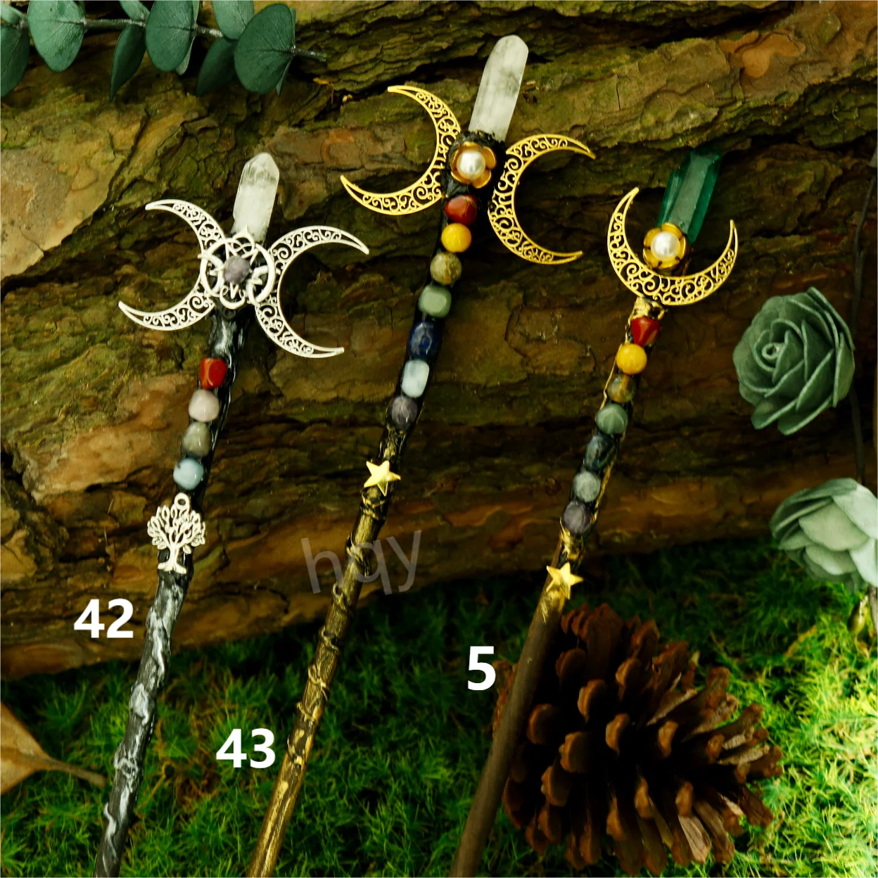 wand pentagram moon scepter witch wand moon star Wiccan a…
