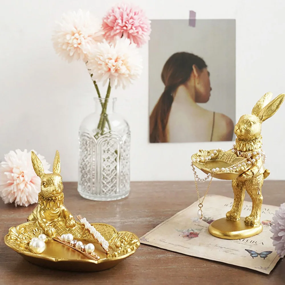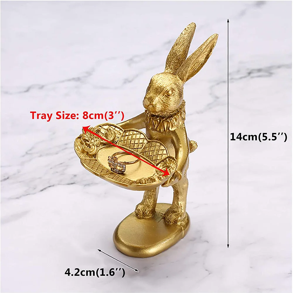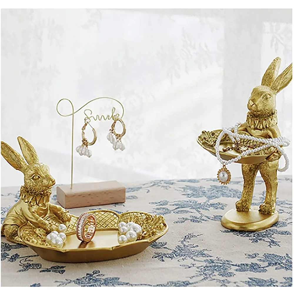 Easter Rabbit Figurine Jewelry Display Tray is an adorable seasonal gift that Decorative and Functional in the same time. Cute Golden Rabbit design adds an vivacious and sophisticated to your home life.