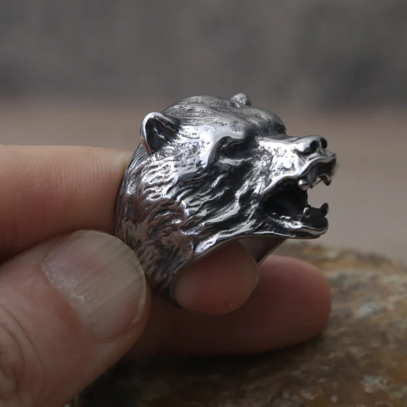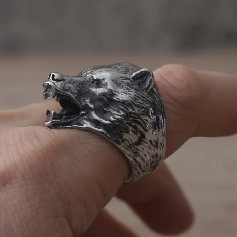 Name:Domineering Slavic Bear Rings For Men Vintage Stainless Steel Viking Ring Nordic Amulet Jewelry Accessories Wholesale