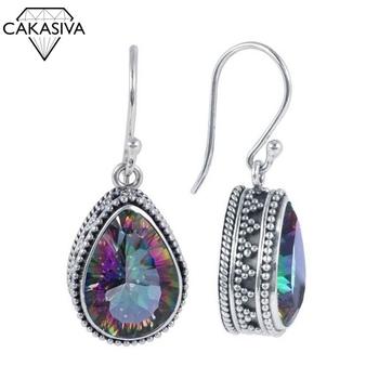 Women's S925 Silver Water Drop Pear Shaped Retro Seven-Color Topaz Earrings Party Birthday Holiday Gift Jewelry
