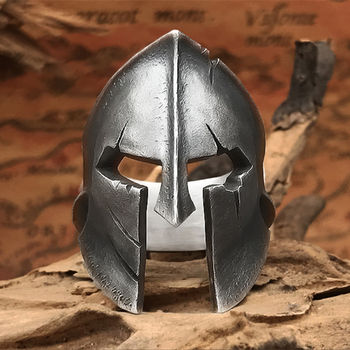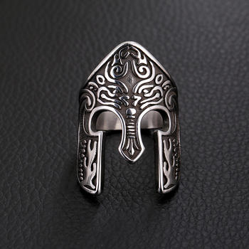 Man Viking Warrior Helmet Ring Scandinavian Pagan Norse Rune Spartan Mask Helmet Rings for Men Totem Amulet Jewelry