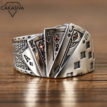 Vintage Hip Hop Thai Silver 925 Silver Playing Card Straight Flush Men's Open Ring Party Gift Jewelry Ring Wholesale