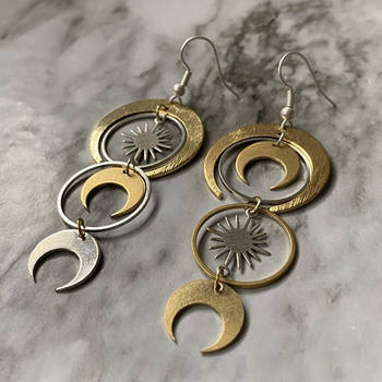 Mixed Metal Gold Silver Plated Geometric Crescent Moon Phase Earrings, Celestial Boho Witchy Jewelry
