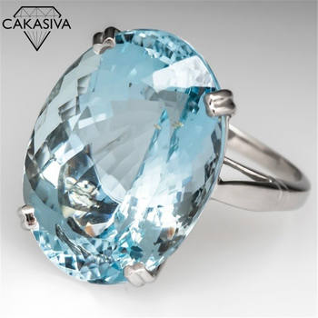 925 Silver Inlaid Aquamarine Zircon Ring Women's Wedding Engagement Festival Gift Jewellery