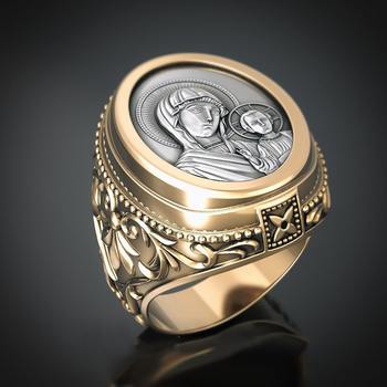 Men's Vintage S925 Silver Cross 14K Yellow Gold Christ Ring Gift Party Jewelry Ring Wholesale