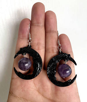 Purple Crystal Moon Earrings Crescent Moon Jewelry Dark Style Gothic Stone Pendant Magic Wiccan Witch Style Macabre Amulet