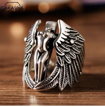 Angel Wing Ring European and American Retro Thai Silver Dyed Black Angel Wing Opening Ring Girl