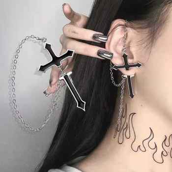 Gothic Kinitial Sword Chain Earrings Vintage Cool Punk Crystal Ear Jacket