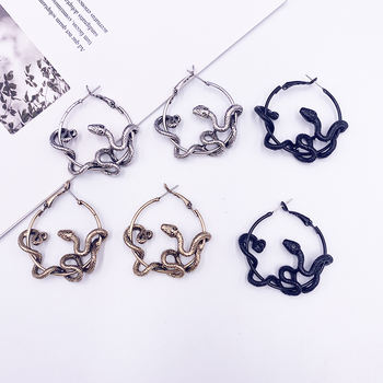 Goth Snake And Rose Big Statement Stud Earrings For Women Vintage Punk Oversized Flower Long Earrings y2k jewelry korean fashion