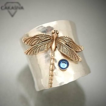 Vintage 925 Silver Carved Gold Dragonfly Ring Round Tube Bee Bird Magpie Ring Party Gift Jewelry Ring Wholesale