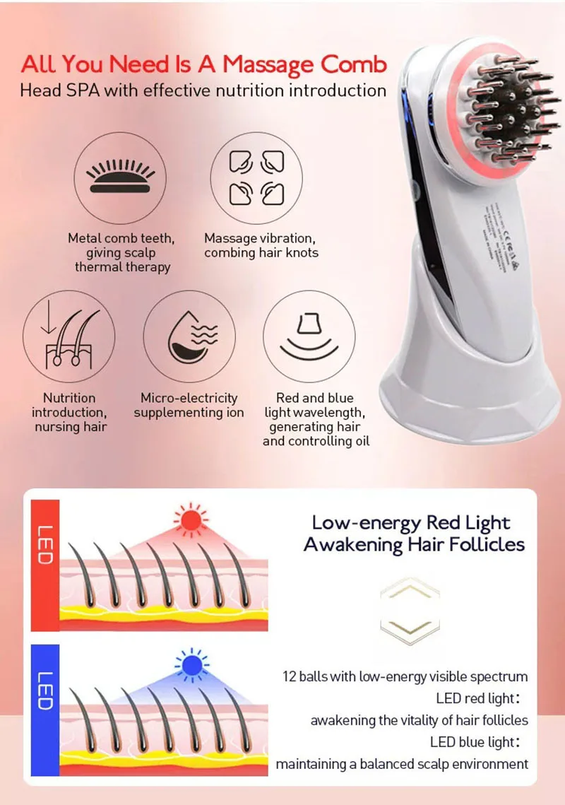 Red light wave: introducing nutrition and supplementing ion,Hot energy givesscalp a spa