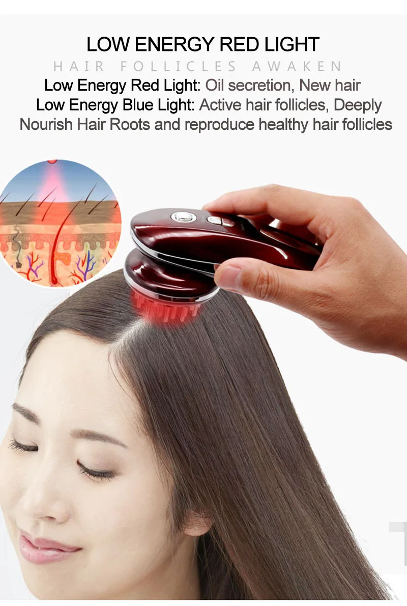 Electric Brush Scalp Massage Comb Hair Growth Vibration Massager EMS Anti Hair Loss Losing Rechargeable Home Health Care Therapy