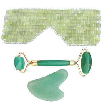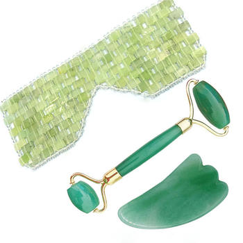 Green Aventurine Jade Eye Mask Face Massager Jade Roller Guasha Set Eye Massager Therapy Jade Stone Facial Massager Scraper
