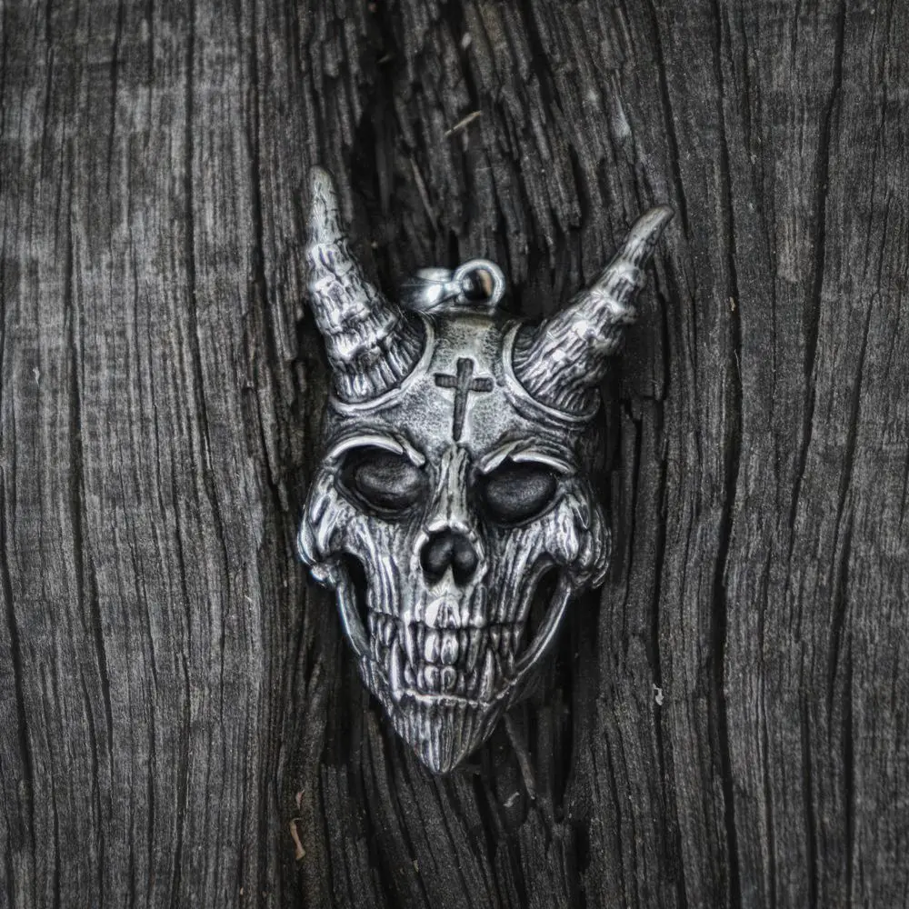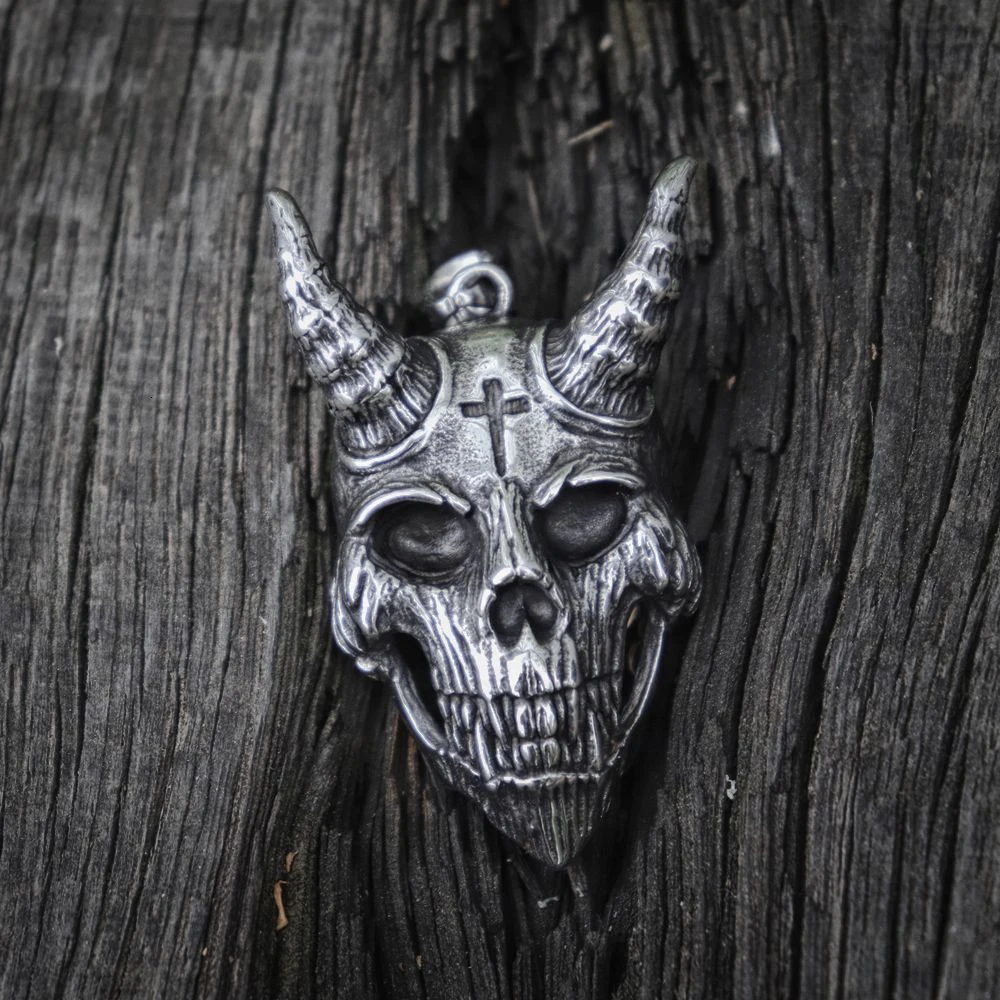 EYHIMD Gothic Devil Cross Stainless Steel Skull Pendant Necklace Biker Style Jewelry