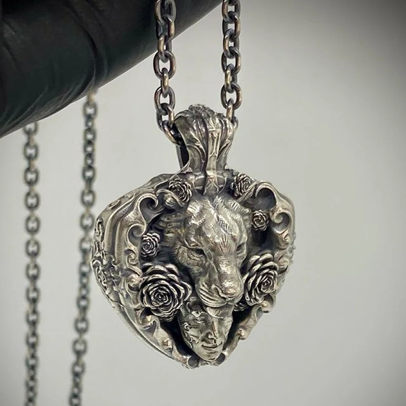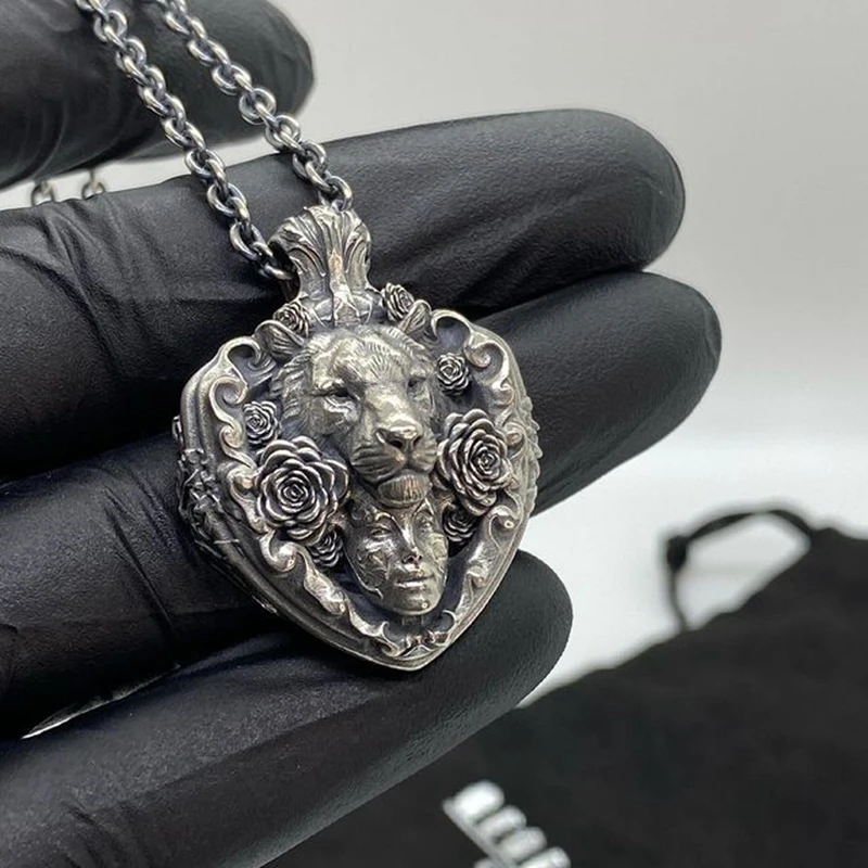 EYHIMD Mens Flowers Skull 316L Heart Pendant Necklaces Me…